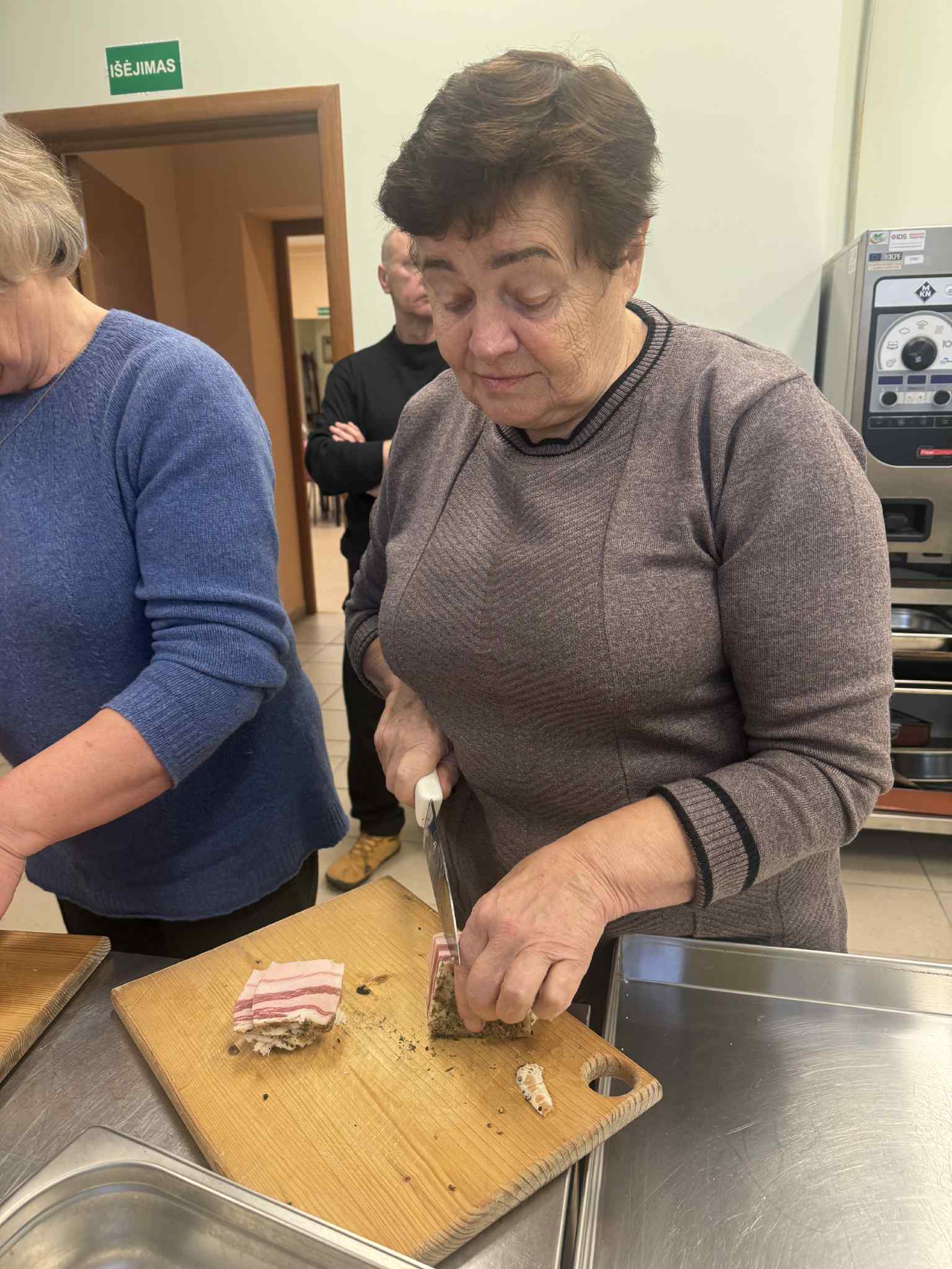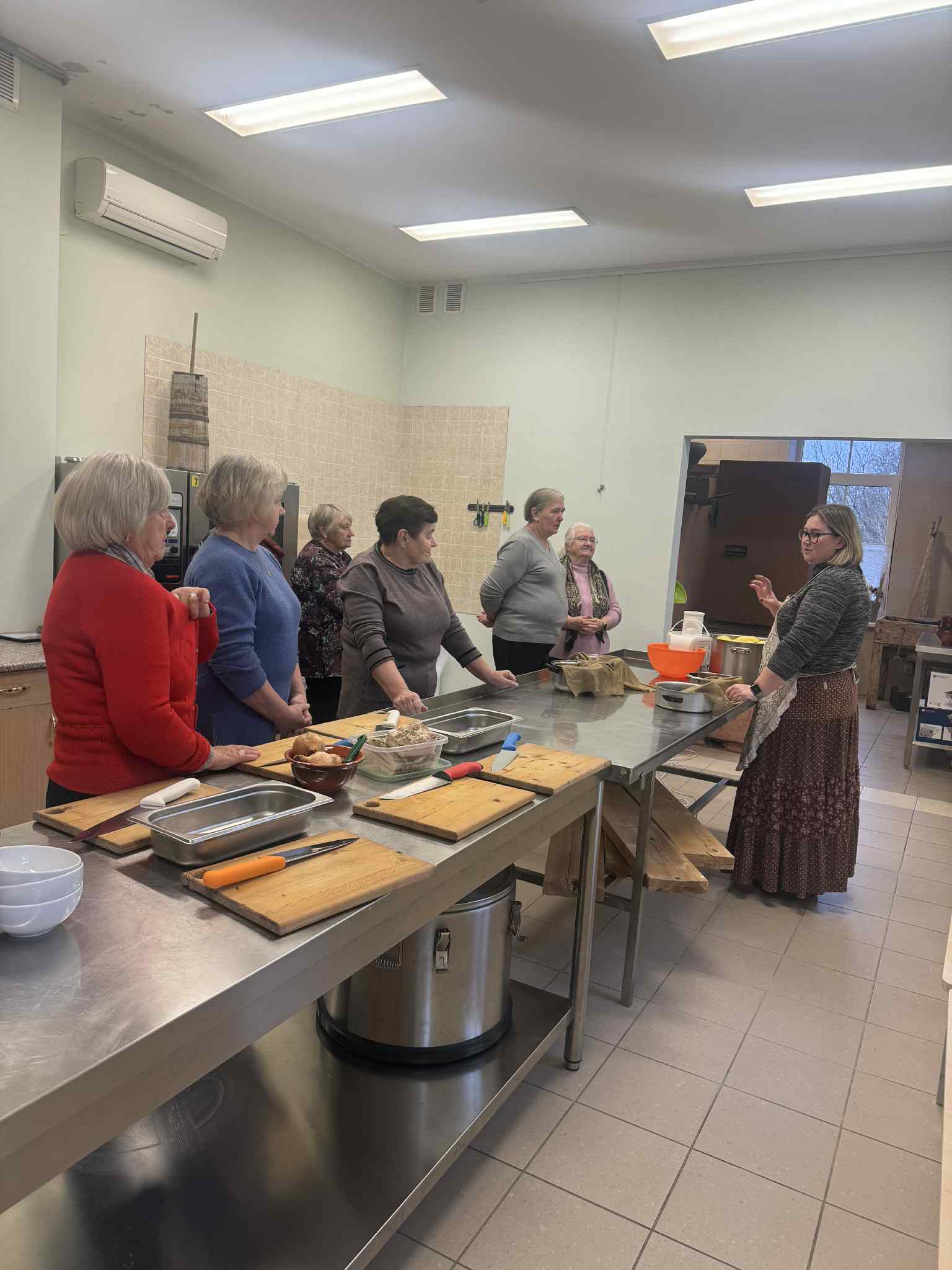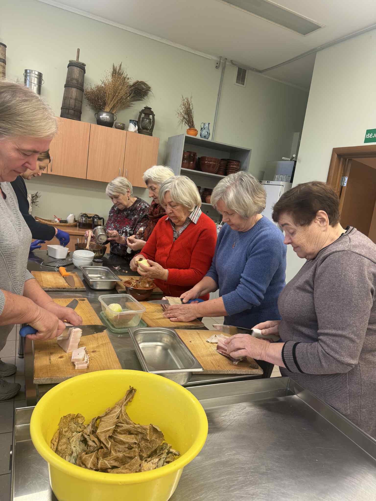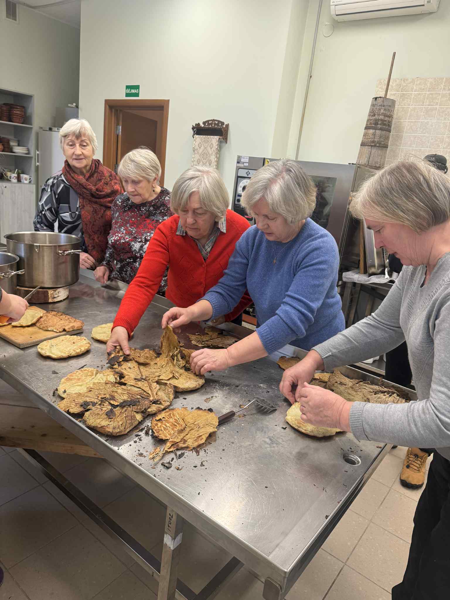 Šį kartą senjoros dalyvavo „Dzūkiškos patrovos" - bandos ant kopūsto lapo kepimo edukacijoje. Tai proga sugrįžti į prisiminimus, kai šis procesas vyko senovinėje dzūkiškoje troboje, į tas akimirkas kai kūrenosi krosnys, kai mamos ir močiutės kepdavo bandas, o namuose tvyrodavo malonus maisto kvapas. Tokia edukacija leidžia pajusti tą senąjį, tikrąjį Dzūkijos ritmą - nuoširdų, alsuojantį ramybe ir natūralumu - kai ant stalo būdavo pačių užauginti produktai.