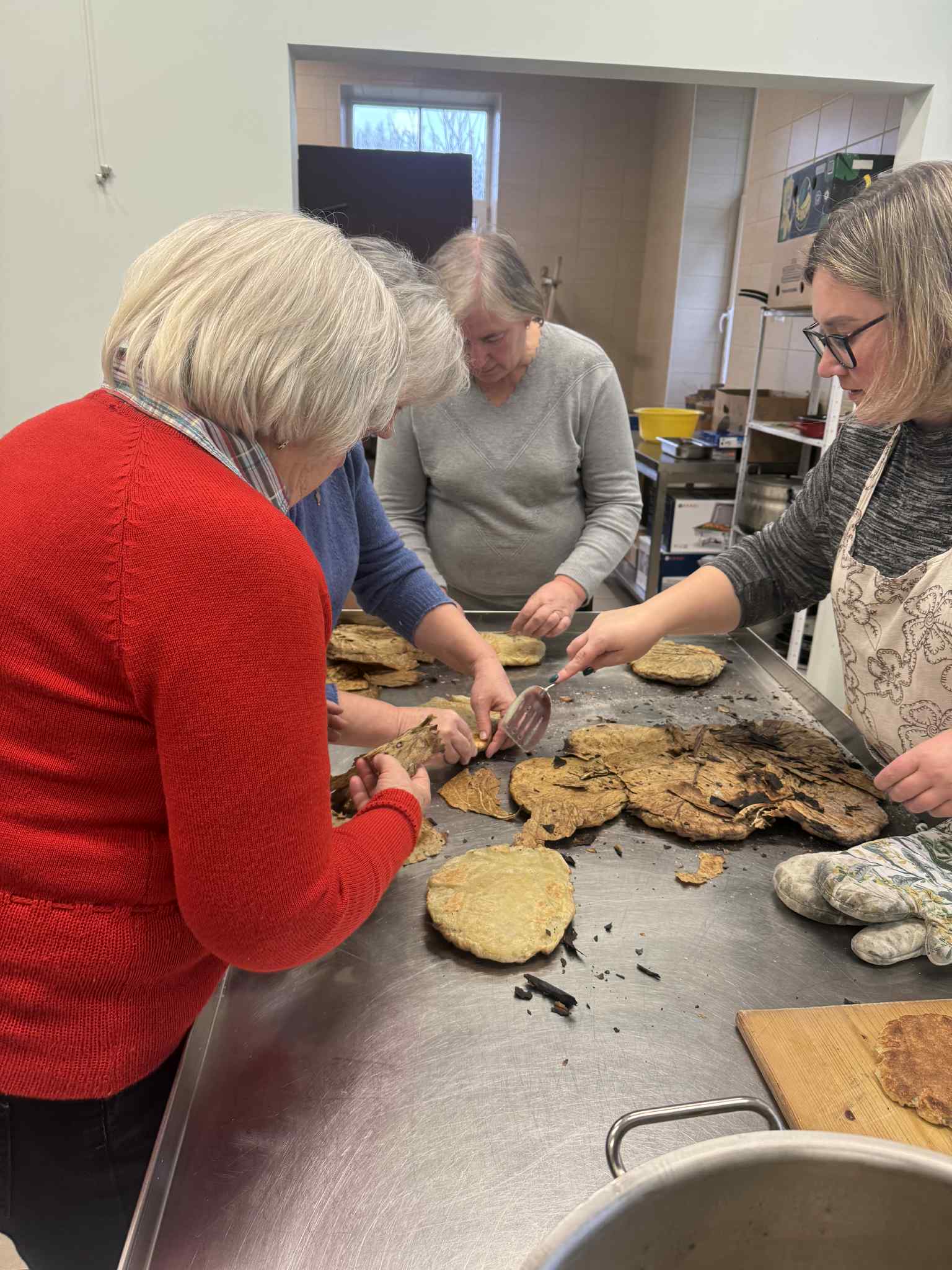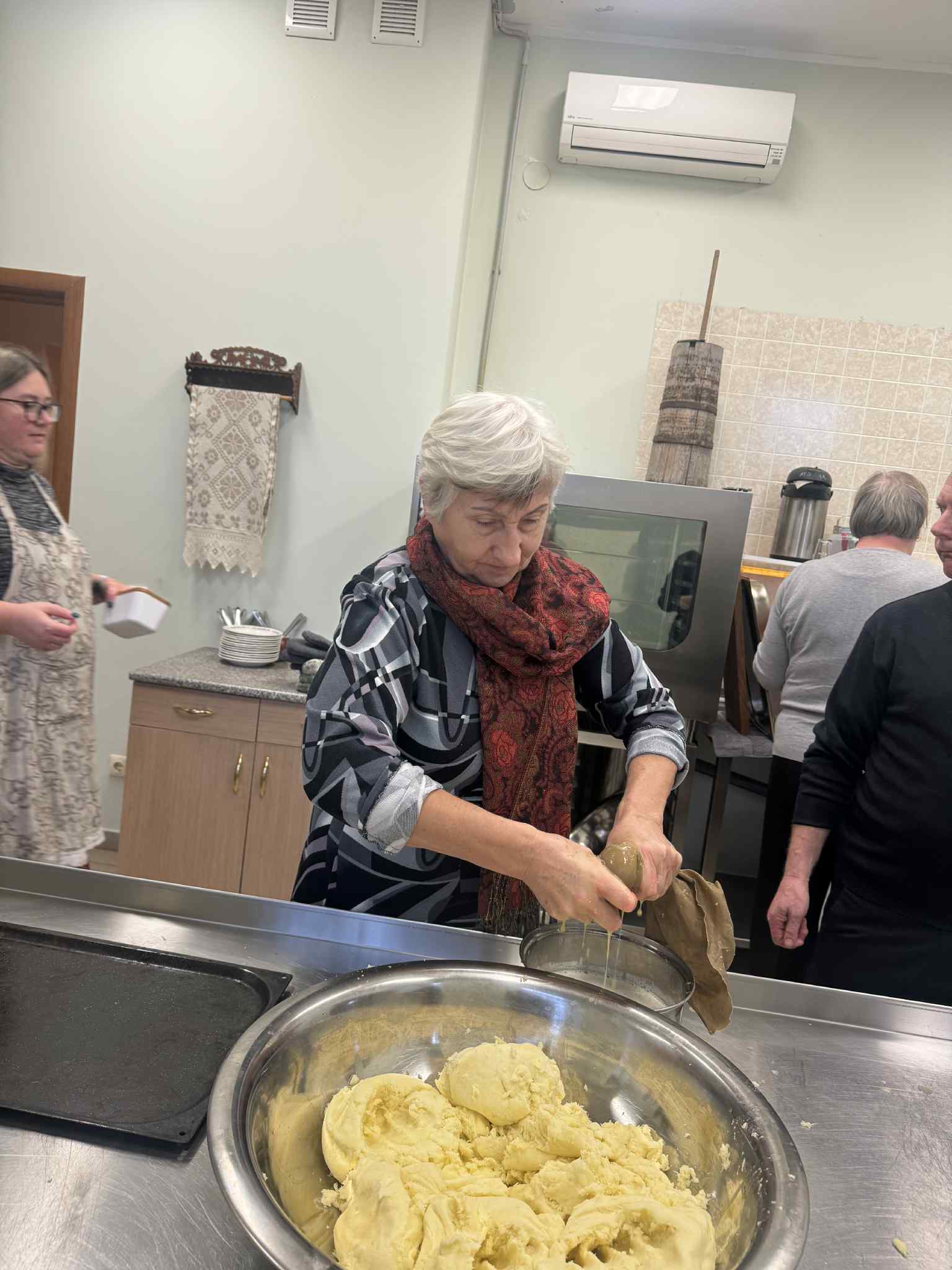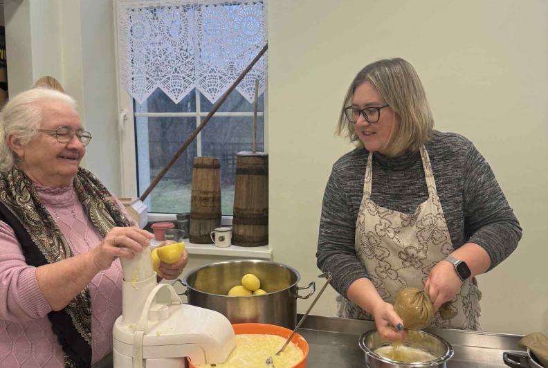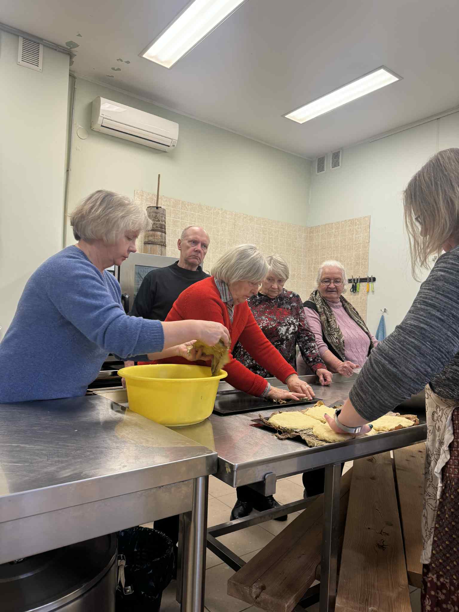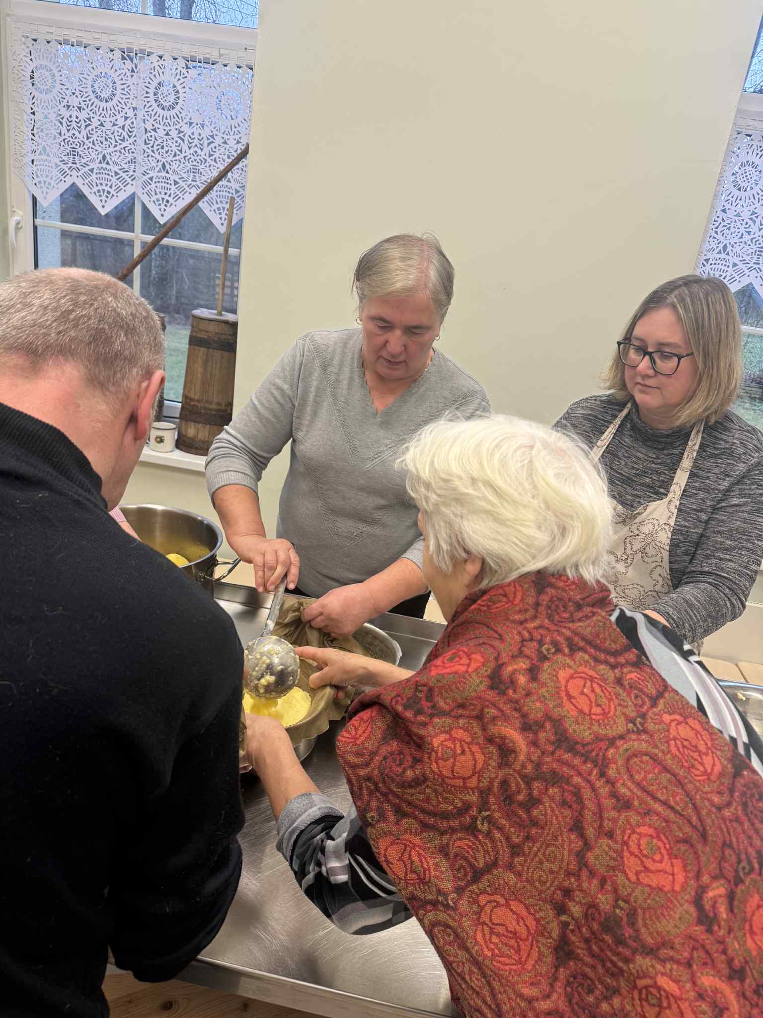 Šį kartą senjoros dalyvavo „Dzūkiškos patrovos" - bandos ant kopūsto lapo kepimo edukacijoje. Tai proga sugrįžti į prisiminimus, kai šis procesas vyko senovinėje dzūkiškoje troboje, į tas akimirkas kai kūrenosi krosnys, kai mamos ir močiutės kepdavo bandas, o namuose tvyrodavo malonus maisto kvapas. Tokia edukacija leidžia pajusti tą senąjį, tikrąjį Dzūkijos ritmą - nuoširdų, alsuojantį ramybe ir natūralumu - kai ant stalo būdavo pačių užauginti produktai.