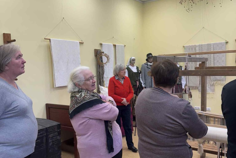 Apsilankymo metu dalyviai turėjo progą apžiūrėti Amatų centro eksponuojamas parodas.