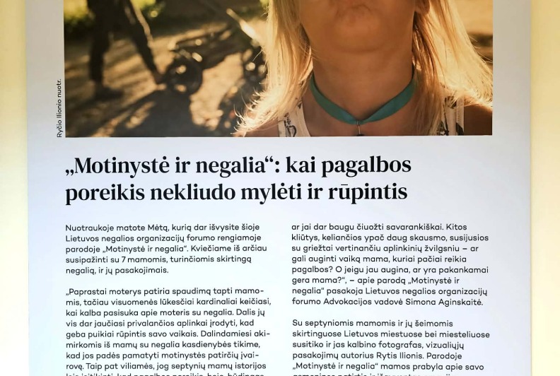 Nuo 2026 m. vasario 20 d. Varėnos socialinių paslaugų centre vieną savaitę vyks fotografijų paroda „Motinystė ir negalia", kurioje pristatomos septynių mamų su negalia istorijos ir jų motinystės patirtys. Ši paroda atvėrė erdvę diskusijoms apie moterų su negalia teises į motinystę ir jų patiriamus iššūkius, prisideda prie visuomenės sąmoningumo didinimo ir skatina pokyčius, kad moterys su negalia ir jų vaikai gautų reikiamą palaikymą ir pagalbą ne tik Lietuvoje ar Europoje, bet ir visame pasaulyje.