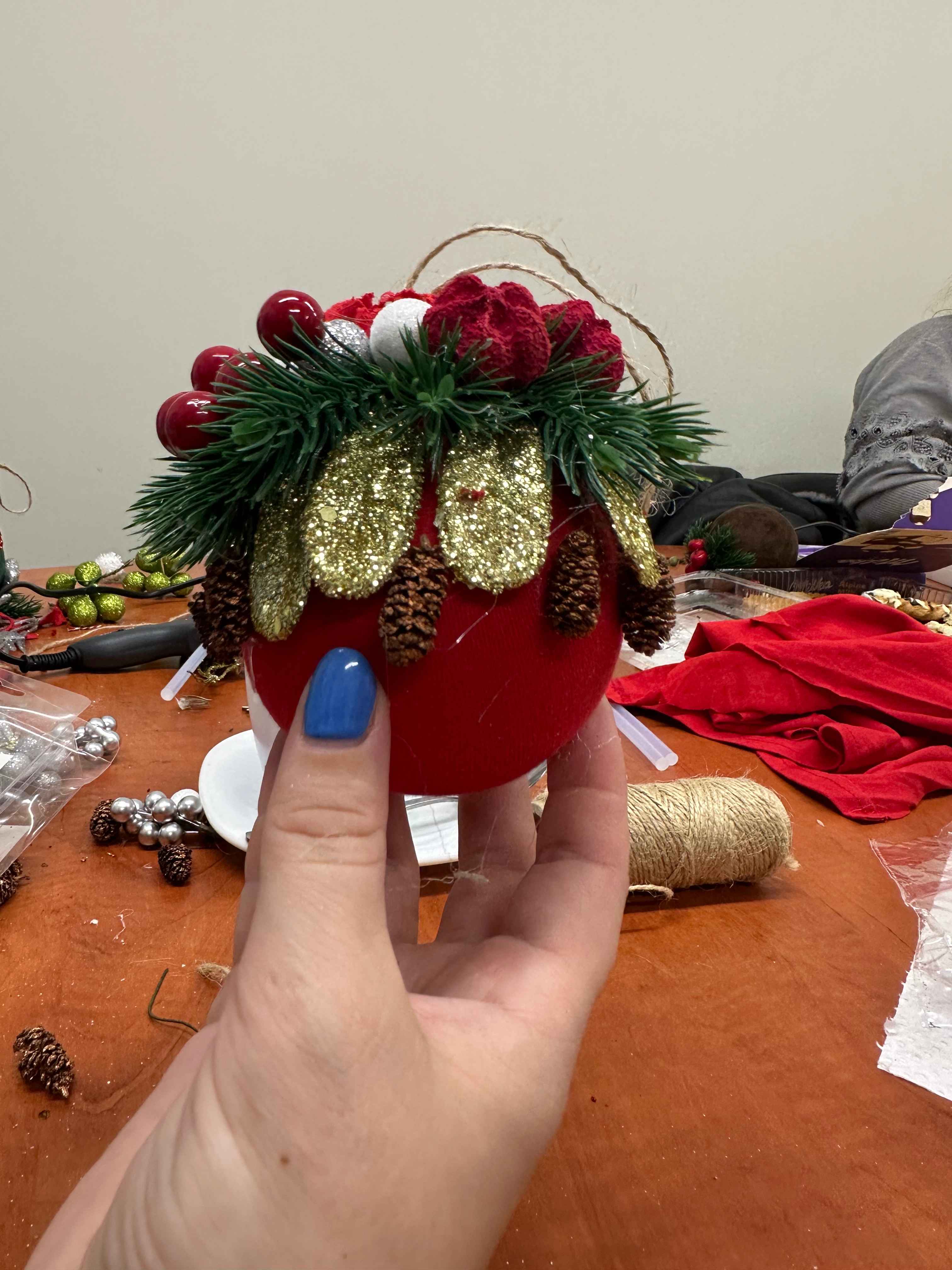 2025 m. gruodžio dešimtą dieną Varėnos rajono socialinių paslaugų centro Šeimos padalinyje jaukiai susėdę prie kavos ir arbatos puodelių, susirinkome į edukacinį renginį – kalėdinio žaisliuko gamybą. Tai buvo popietė, kurioje netrūko ne tik kūrybos, bet ir nuoširdaus bendravimo. Edukacijos dalyviai noriai įsitraukė į kūrybinį procesą: rinkosi medžiagas, derino spalvas, tarėsi vieni su kitais, bandė naujas idėjas. Galiausiai supratome, kad neįmanoma sukurti dviejų vienodų žaisliukų. Kiekvienas buvo ypatingas ir sukurtas su meile ir nuoširdumu.