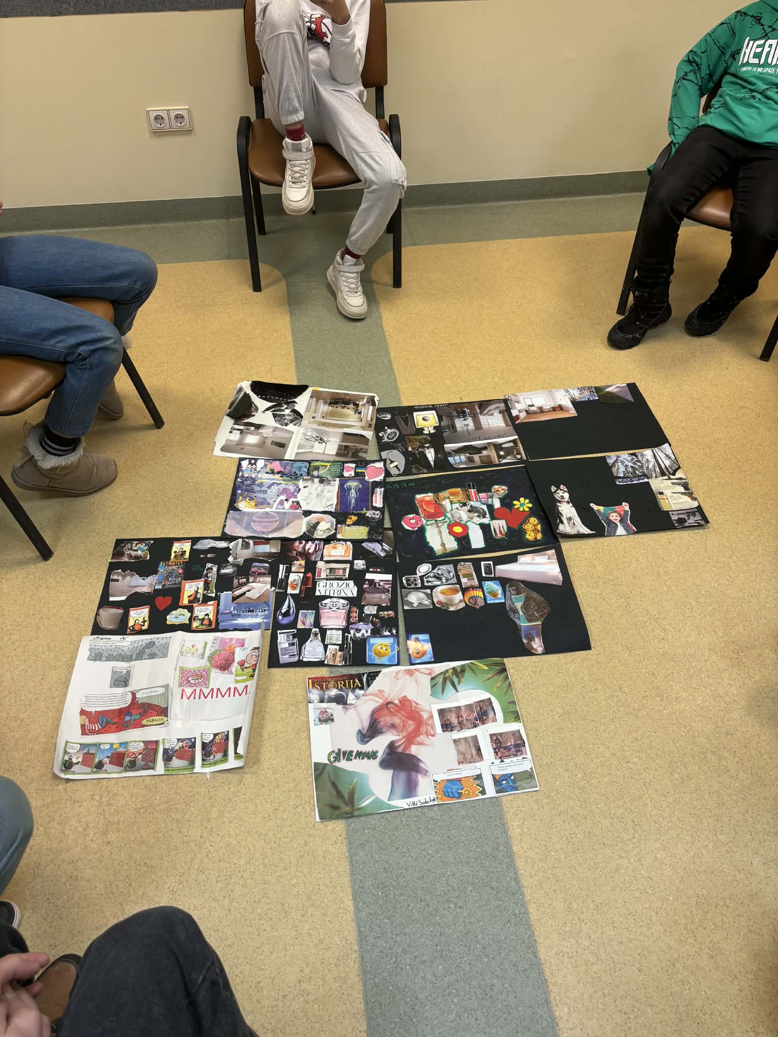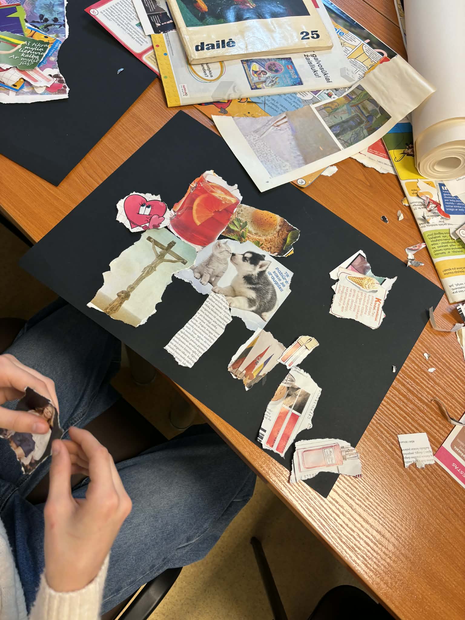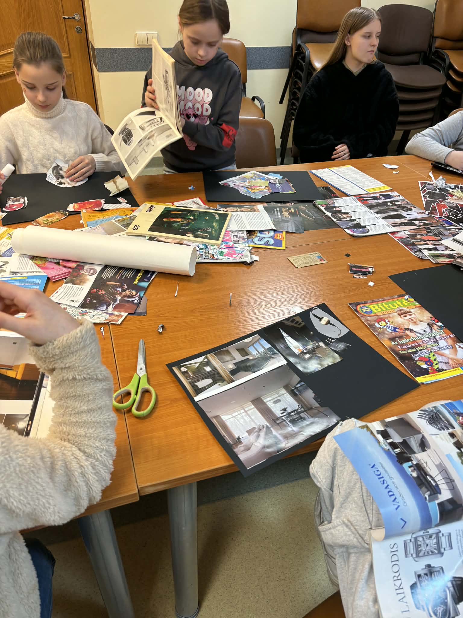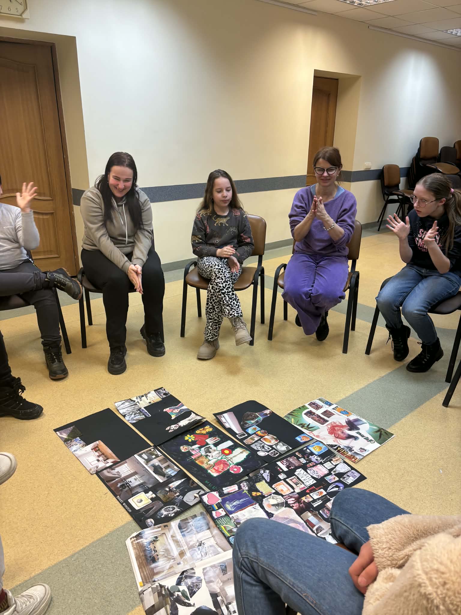 Šio susitikimo metu dalyviai dar giliau nėrė į kūrybinių paslapčių atskleidimą ir savęs pažinimą. Per spalvas, formas ir skirtingas medžiagas jie kūrė mozaikas – dėliodami mažas detales į prasmingą visumą, simboliškai atspindinčią kiekvieno vidinį pasaulį.