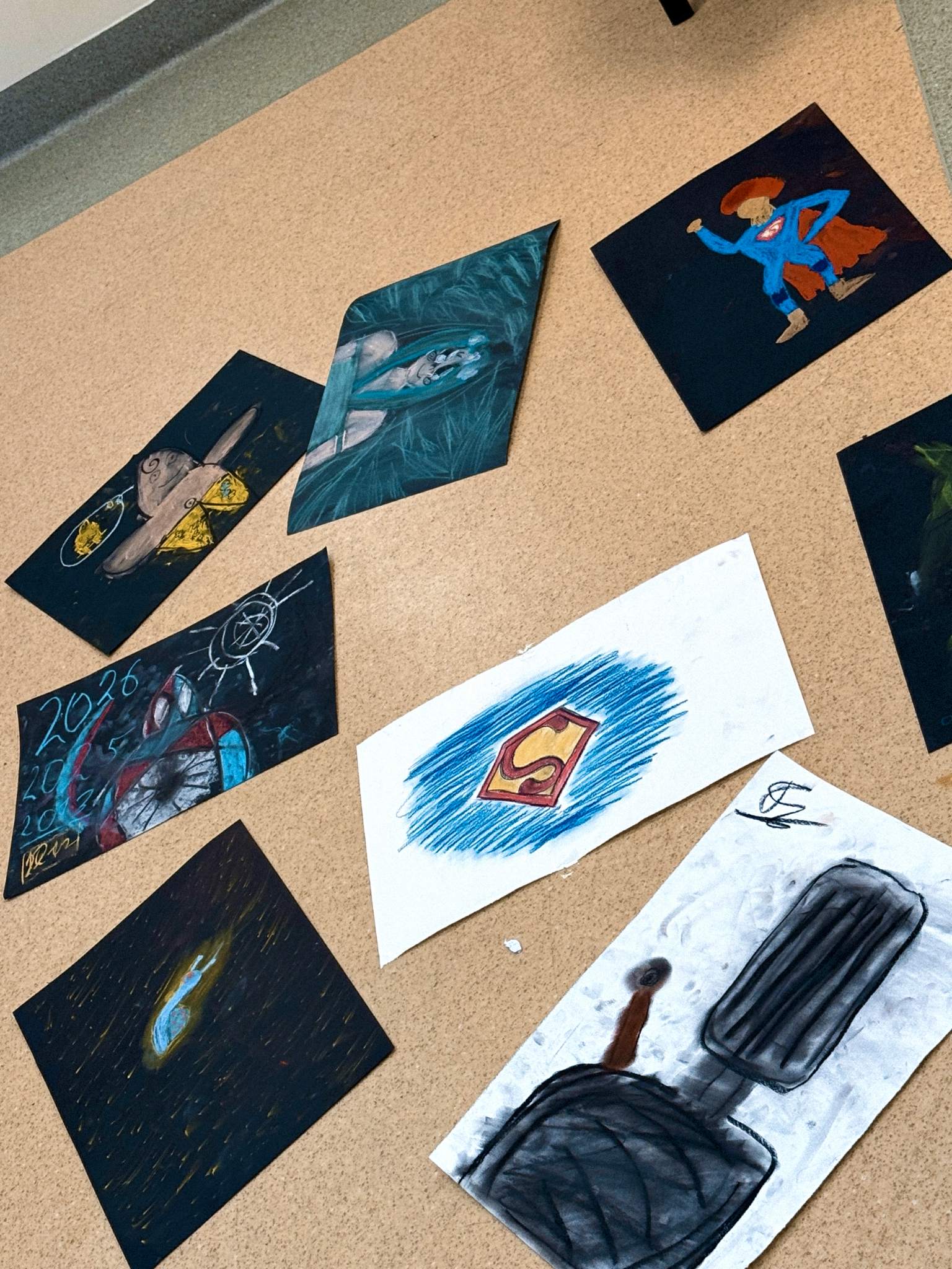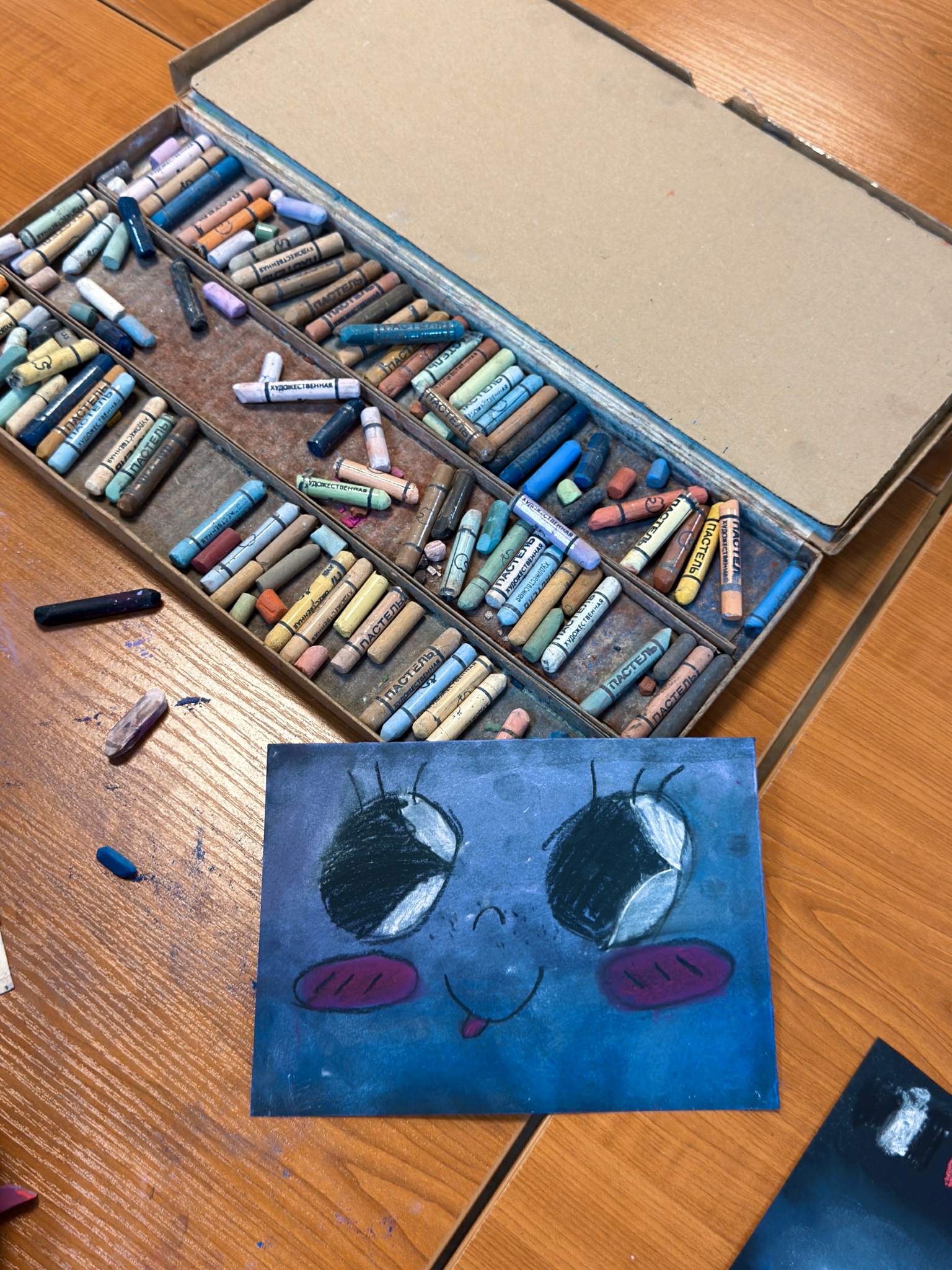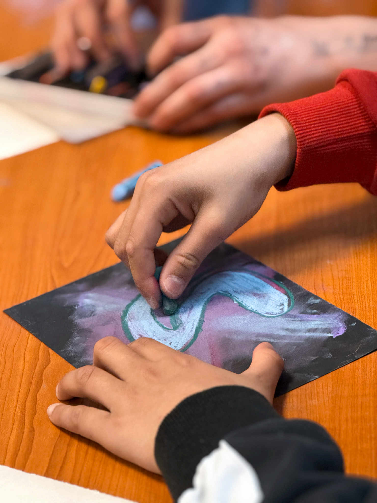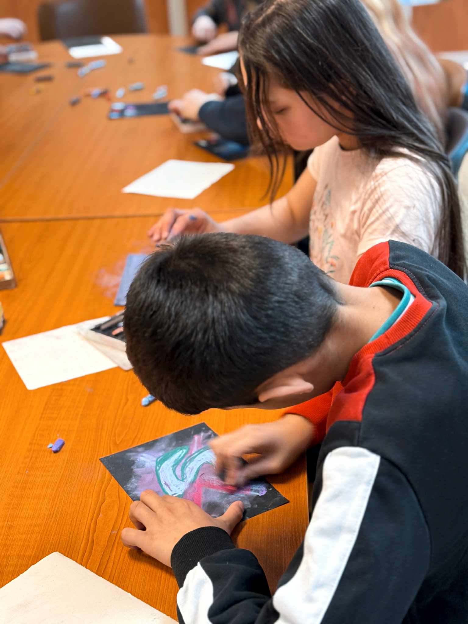 Įgyvendinant projektą „Vaikų gerovės stiprinimas per sociokultūrines veiklas Varėnos mieste“, ketvirtasis dailės terapijos susitikimas tapo spalvinga kelione į vaikų vidinį pasaulį. Šį kartą dalyviai išbandė piešimo kreidelėmis techniką, kuri dėl savo tekstūros ir ryškumo leido vaikams drąsiai, be baimės suklysti, lieti emocijas popieriuje.
