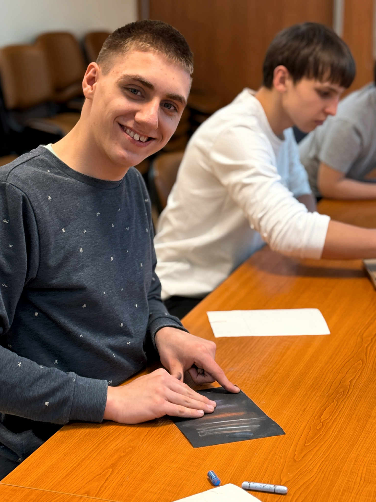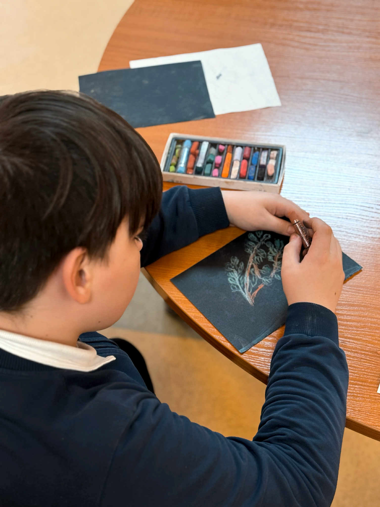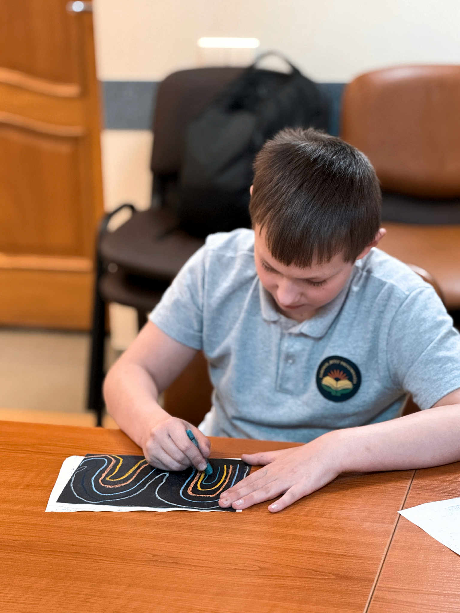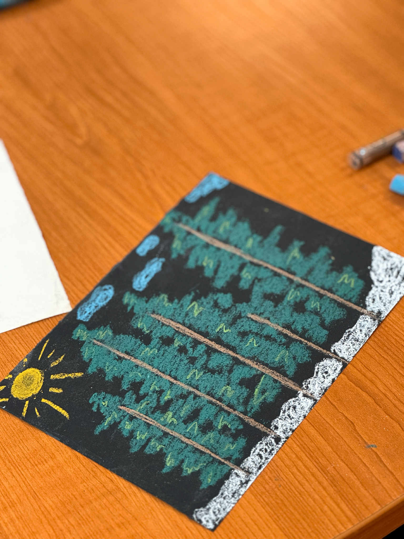 Įgyvendinant projektą „Vaikų gerovės stiprinimas per sociokultūrines veiklas Varėnos mieste“, ketvirtasis dailės terapijos susitikimas tapo spalvinga kelione į vaikų vidinį pasaulį. Šį kartą dalyviai išbandė piešimo kreidelėmis techniką, kuri dėl savo tekstūros ir ryškumo leido vaikams drąsiai, be baimės suklysti, lieti emocijas popieriuje.
