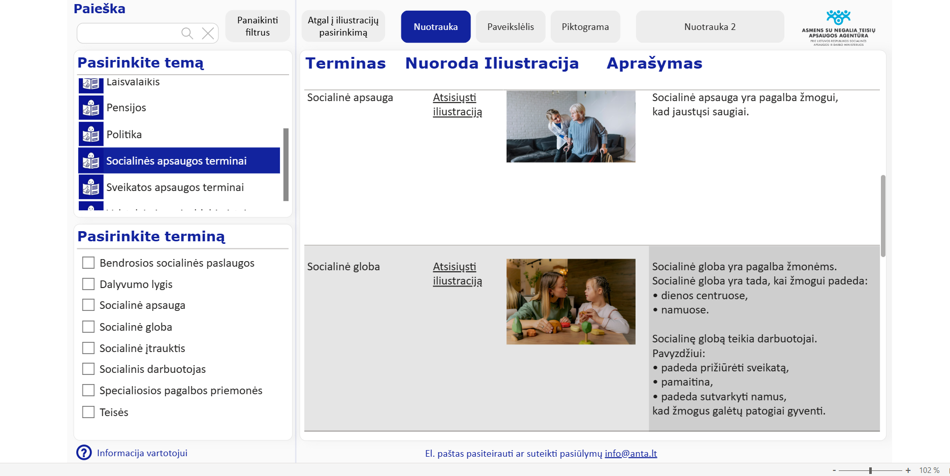 Kas yra daugiavaikės šeimos pašalpos? Ką reiškia siuntimas pas gydytoją otorinolaringologą? Kuo skiriasi laikinoji pensija nuo grynosios pensijos? Tai tik keli pavyzdžiai terminų, kuriuos rasite žodyne su paprastais jų paaiškinimais ir iliustracijomis.