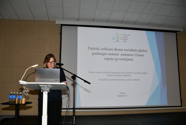 Keturis pranešimus, pristatydami savo teikiamas socialines paslaugas skaitė Utenos socialinių paslaugų centro socialinės darbuotojos ir direktorė.