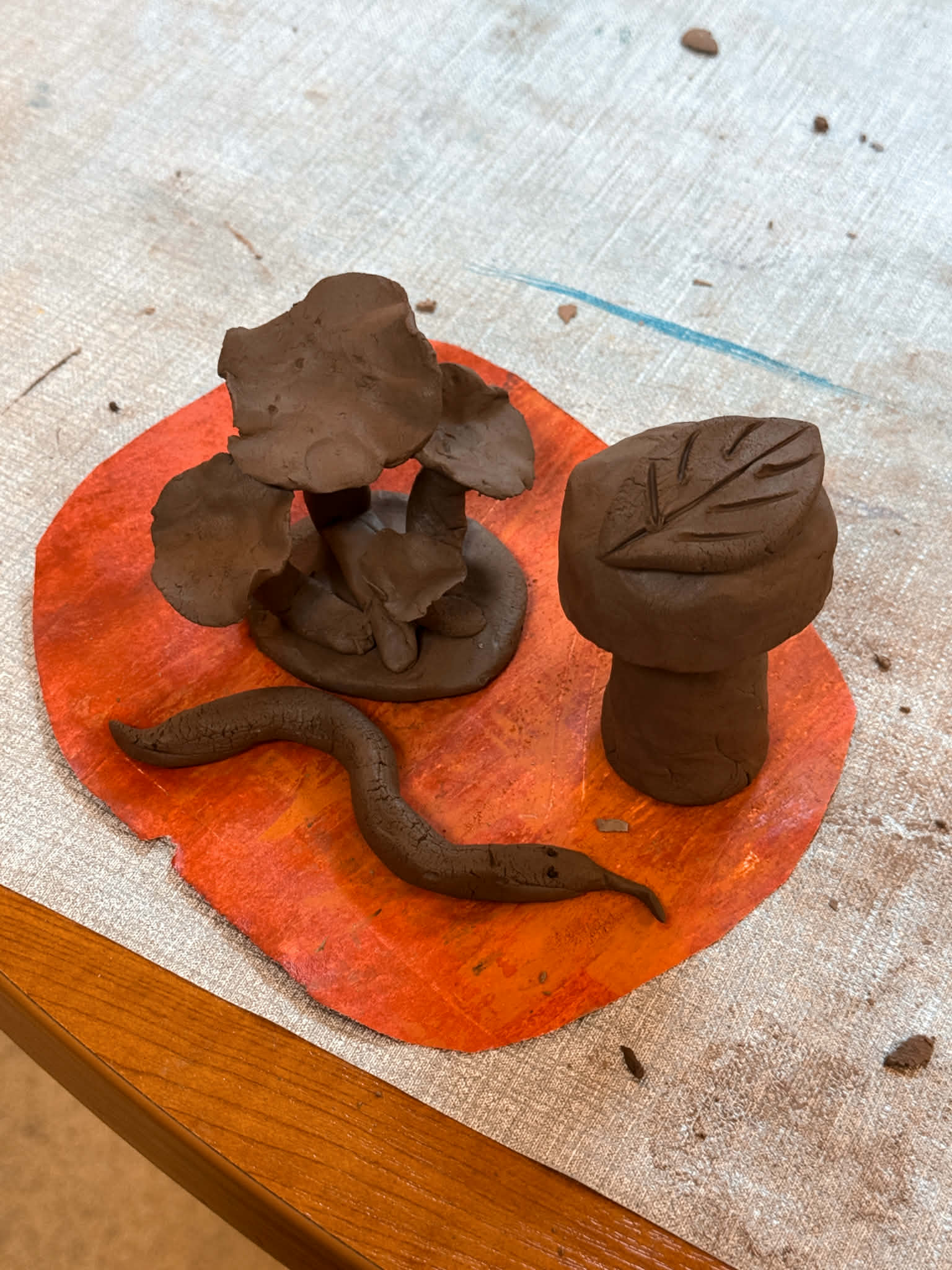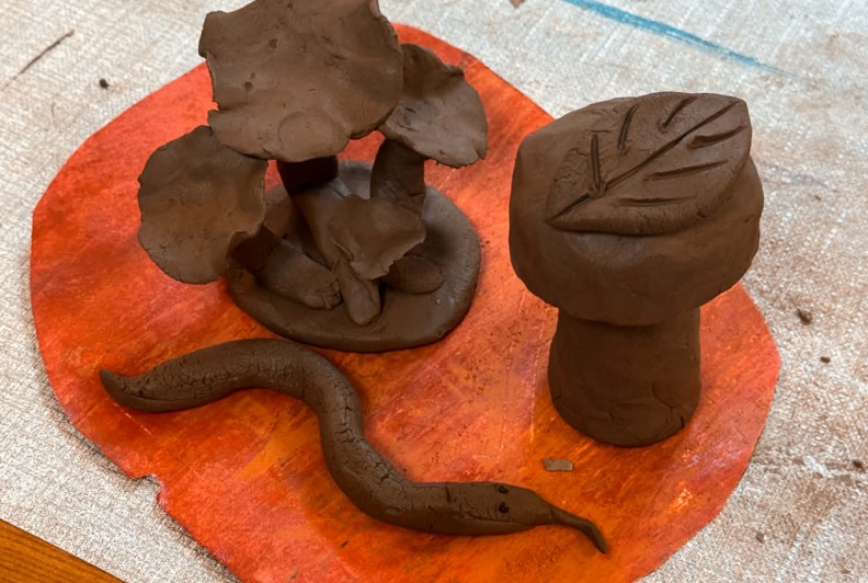 Antroje dalyje visi persikėlė į Dzūkijos miškus – kalbėjosi apie grybavimą, dalijosi patirtimis ir lipdė grybus iš molio. Vaikai pasakojo, su kuo eina grybauti, kokius grybus pažįsta, o vėliau pristatė savo kūrinius.