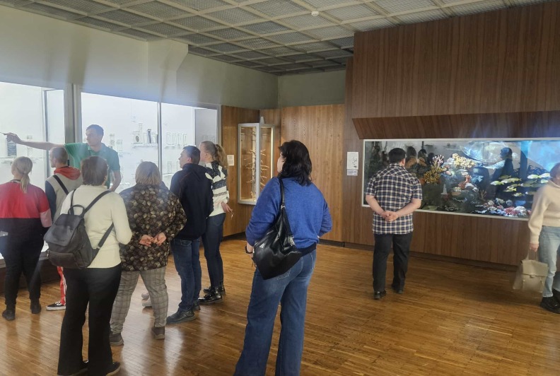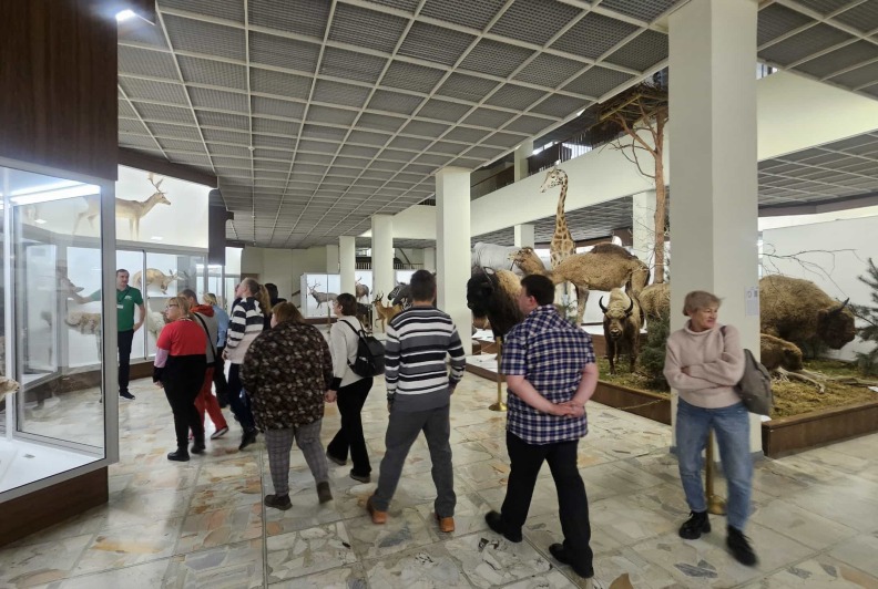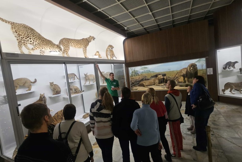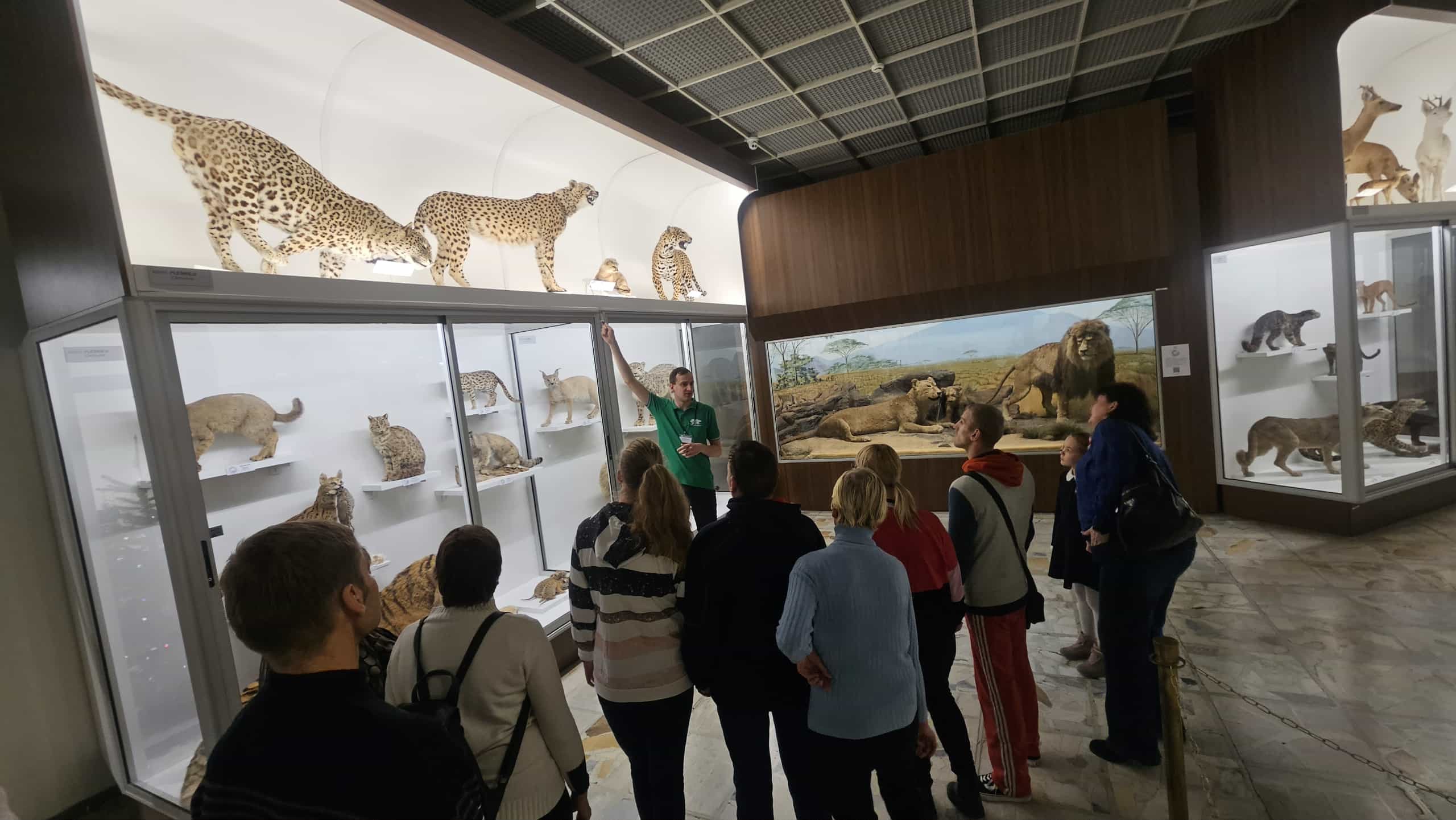 Apžvalginės ekskursijos metu, vedami gido, projekto dalyviai buvo supažindinami su muziejaus ekspozicija, kuri išdėstyta 4 - iuose muziejaus aukštuose, 7 - iose salėse, užimančiose 2456 kv. m. plotą. Ekspozicija sistematinė – nuo bestuburių iki žinduolių.