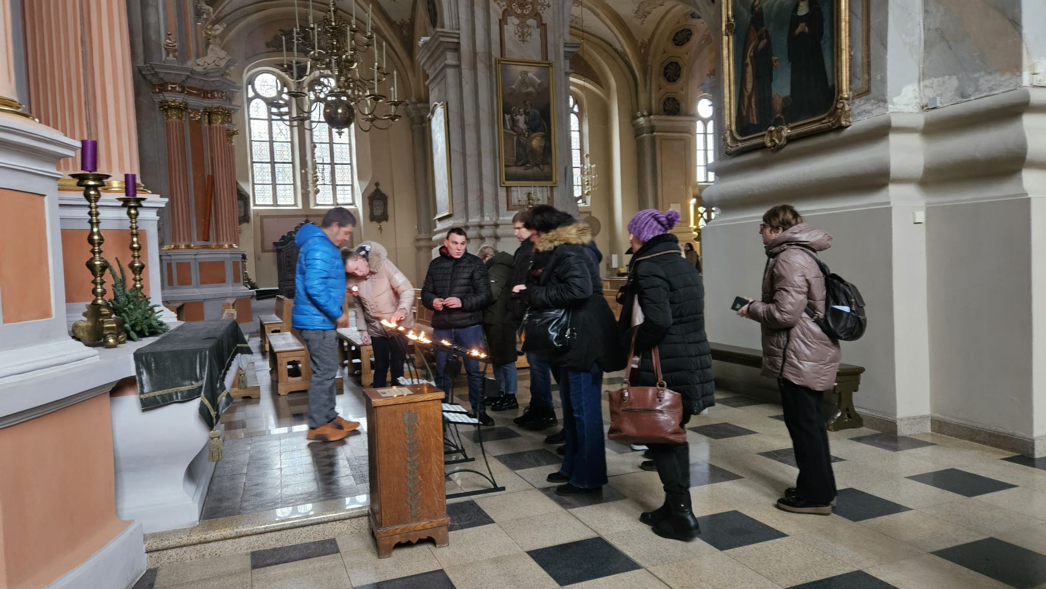 Po informatyvios ekskursijos po valdovų rūmus, esančius katedros aikštėje, dalyviai aplankė katedros aikštėje esančią Vilniaus žaliaskarę.