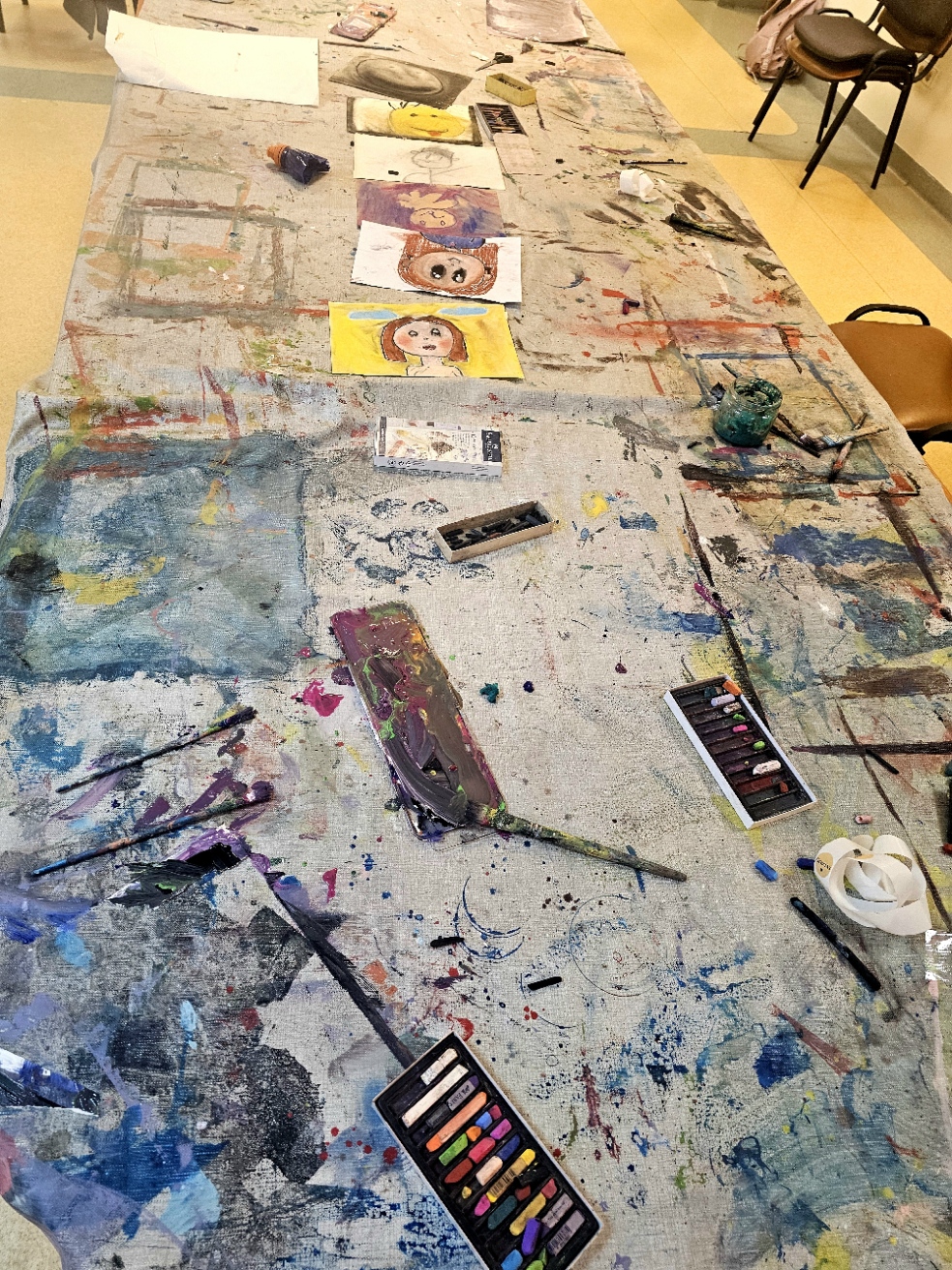 Užsiėmimo metu vaikams buvo pasiūlyta kūrybinė užduotis – piešti individualius piešinius ir vėliau juos perduoti ratu kitiems dalyviams, kad šie papildytų ar patobulintų pradėtą darbą. Šios veiklos tikslas buvo skatinti bendradarbiavimą, kūrybiškumą bei gebėjimą priimti kitų indėlį į savo kūrinį.