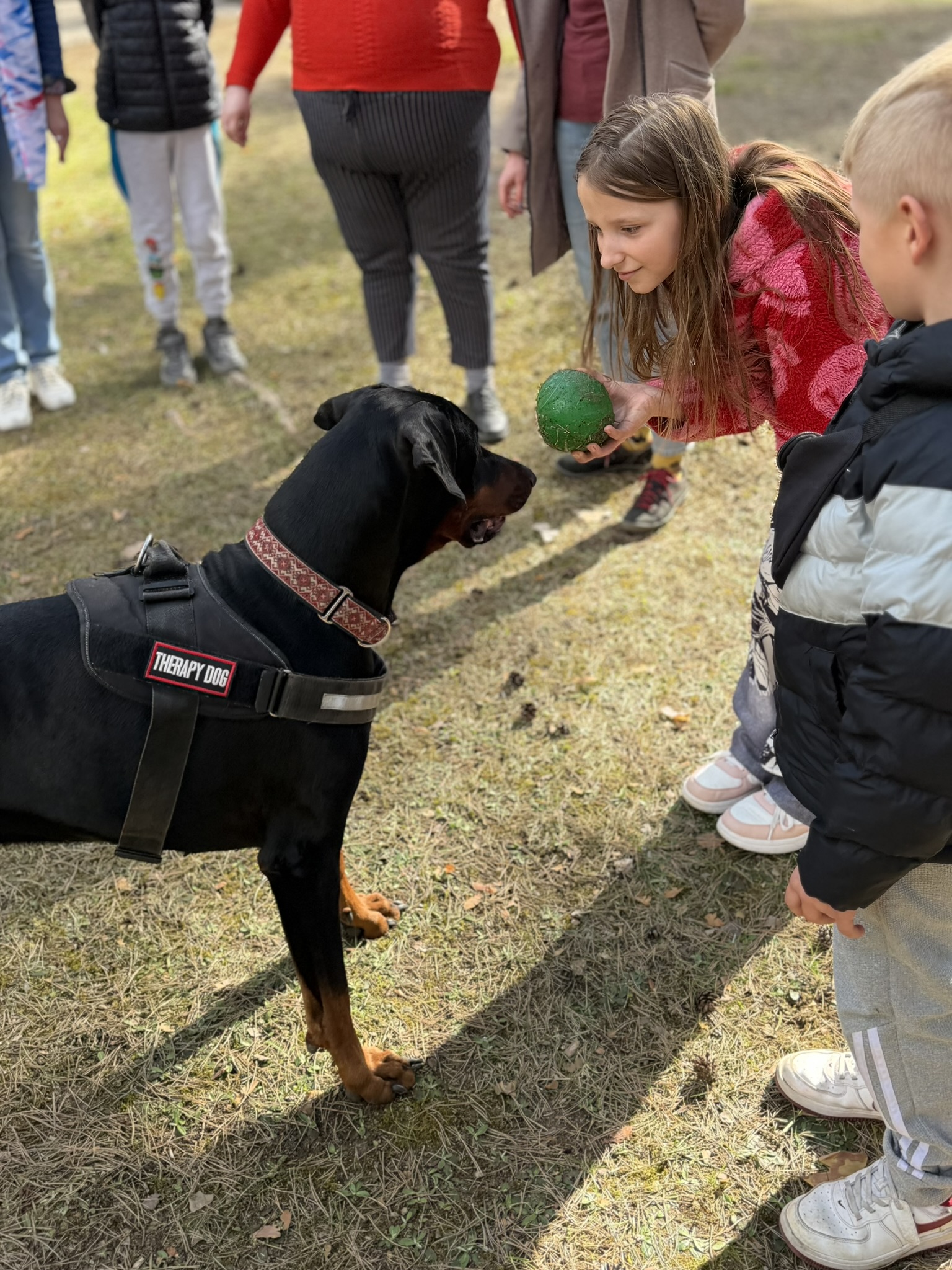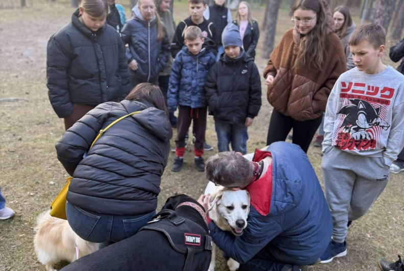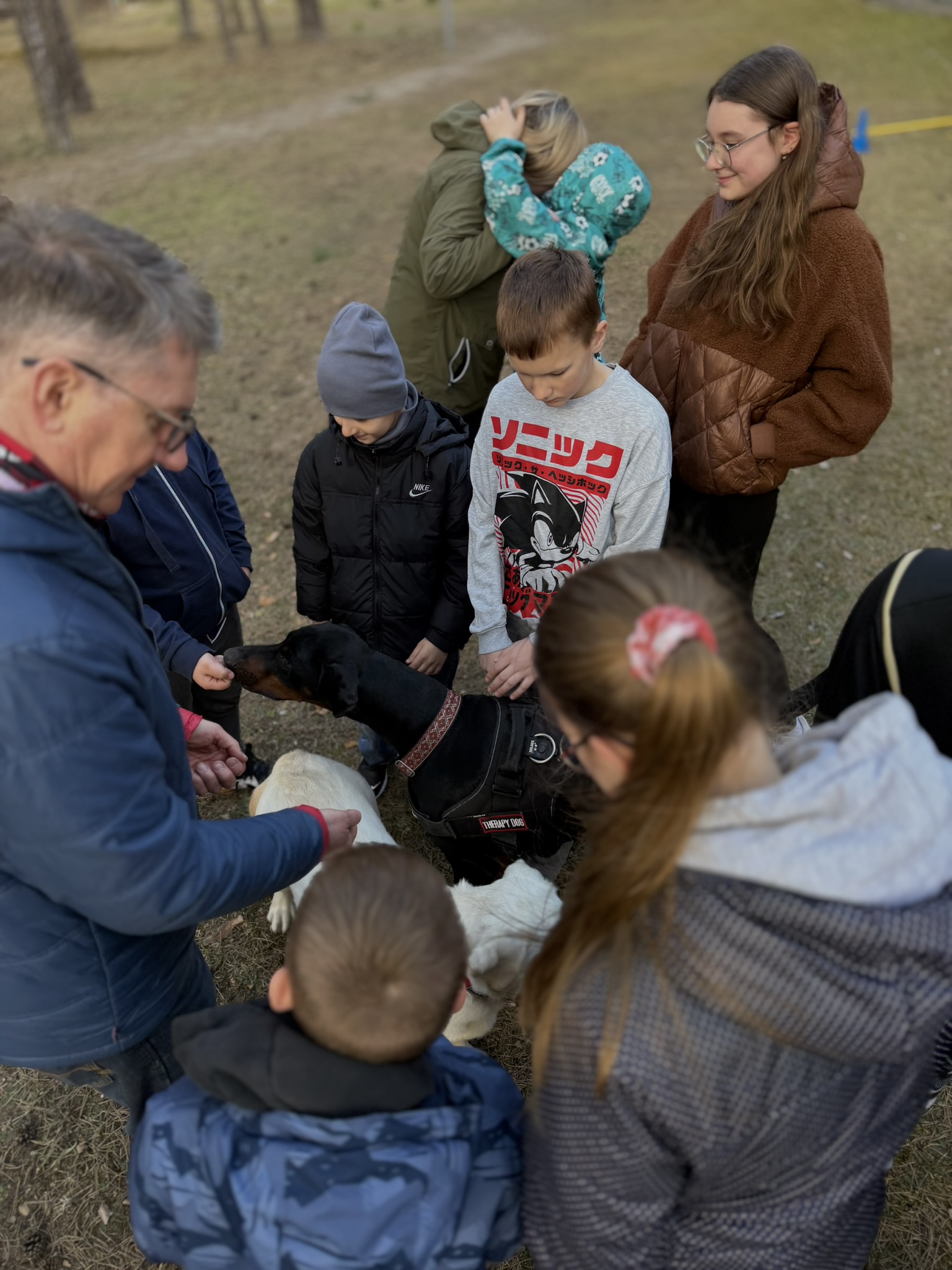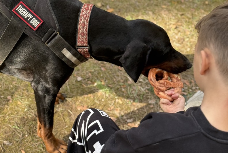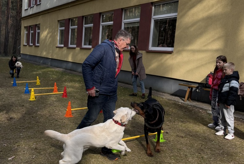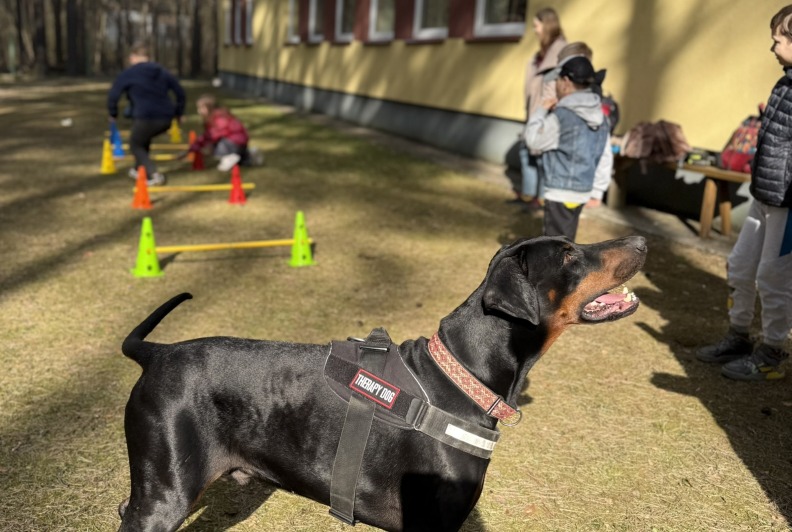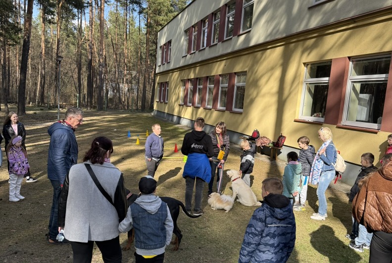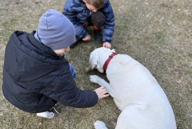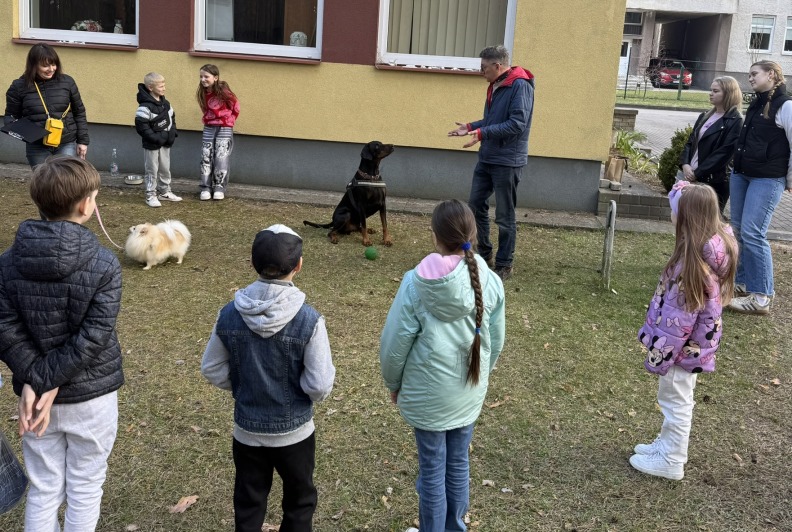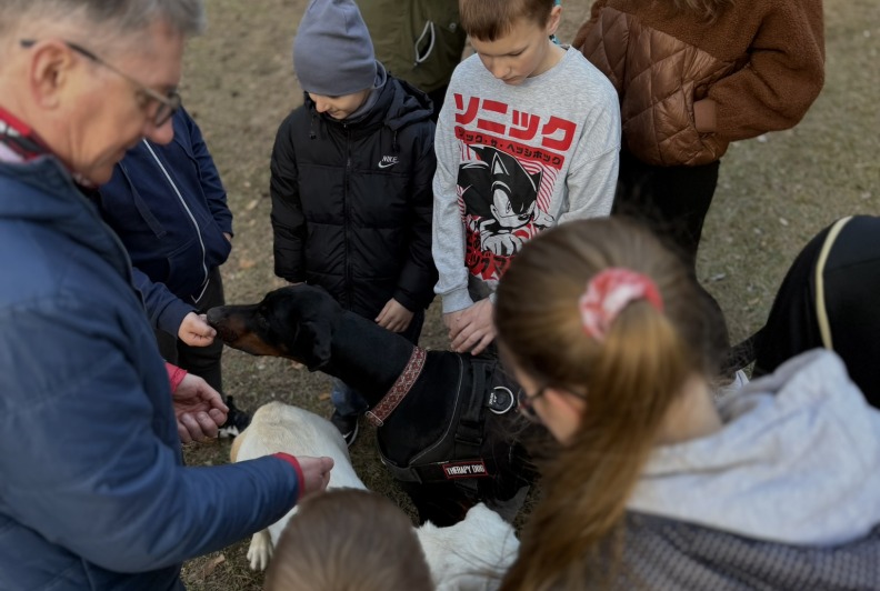 Prie šių veiklų prisijungė ir pirmasis kaniterapijos susitikimas! Jo metu vaikai susipažino (o kai kurie vaikučiai jau buvo pažįstami iš ankstesnių susitikimų) su nuostabiais keturkojais draugais – Argu, Luna ir Lyra. Užsiėmimą vedė Mindaugas su savo šunimis Argu ir Luna bei Jolita su savo šunyte Lyra. Šilta, saugi ir jauki aplinka padėjo vaikams atsipalaiduoti, patirti teigiamas emocijas bei užmegzti ryšį su terapiniais šunimis. Kaniterapija nėra tik žaidimas su šunimis – tai procesas, kurio metu: