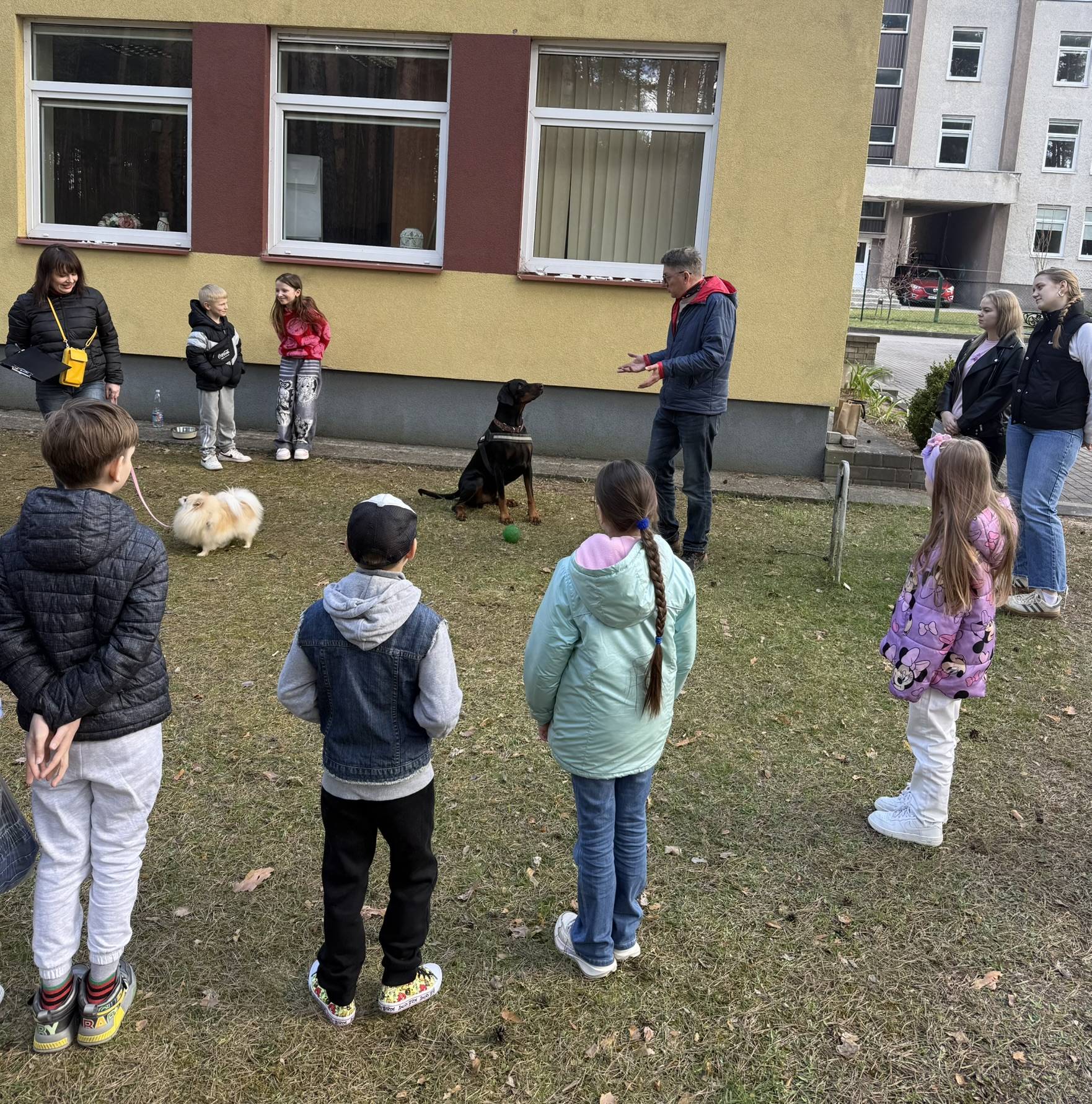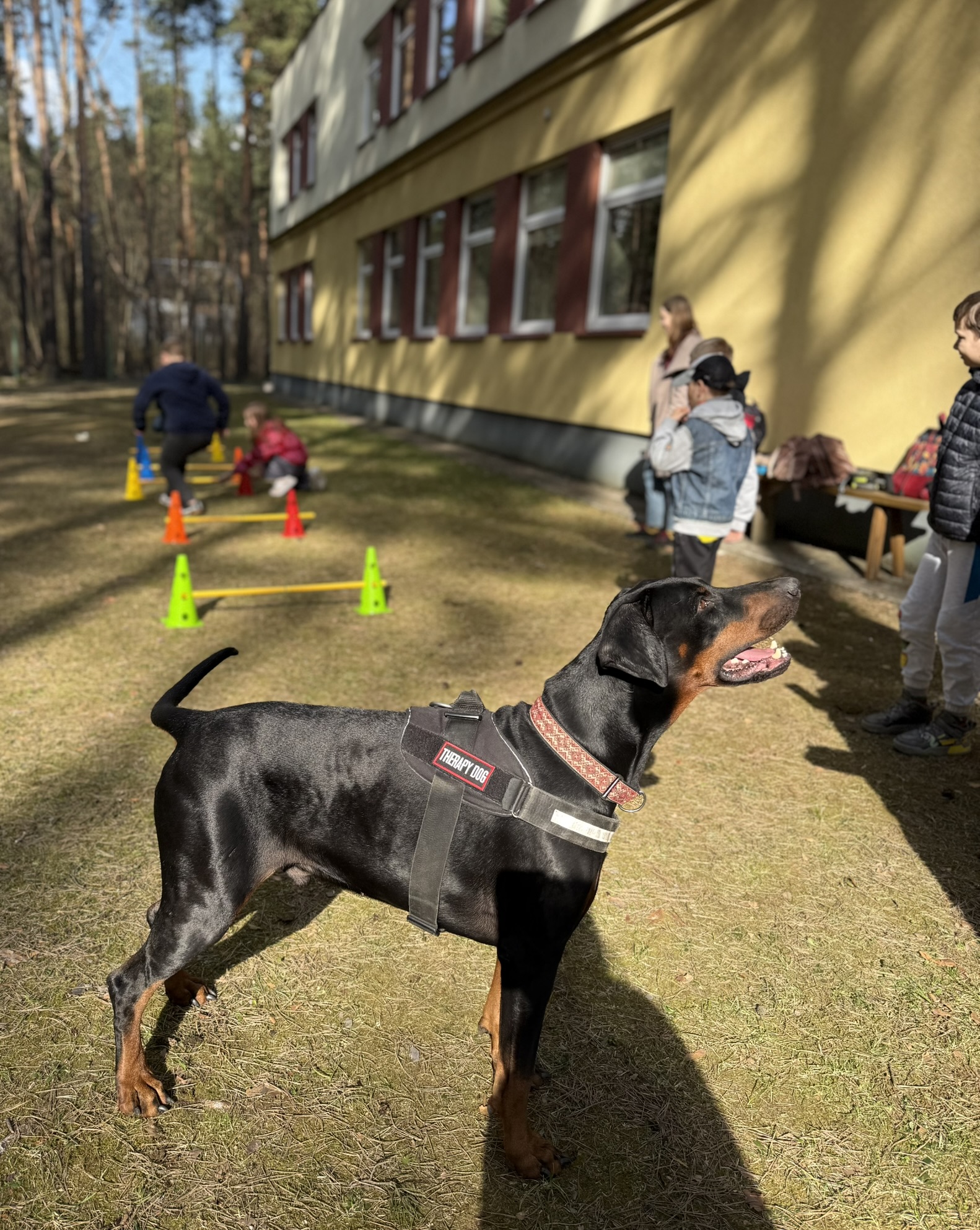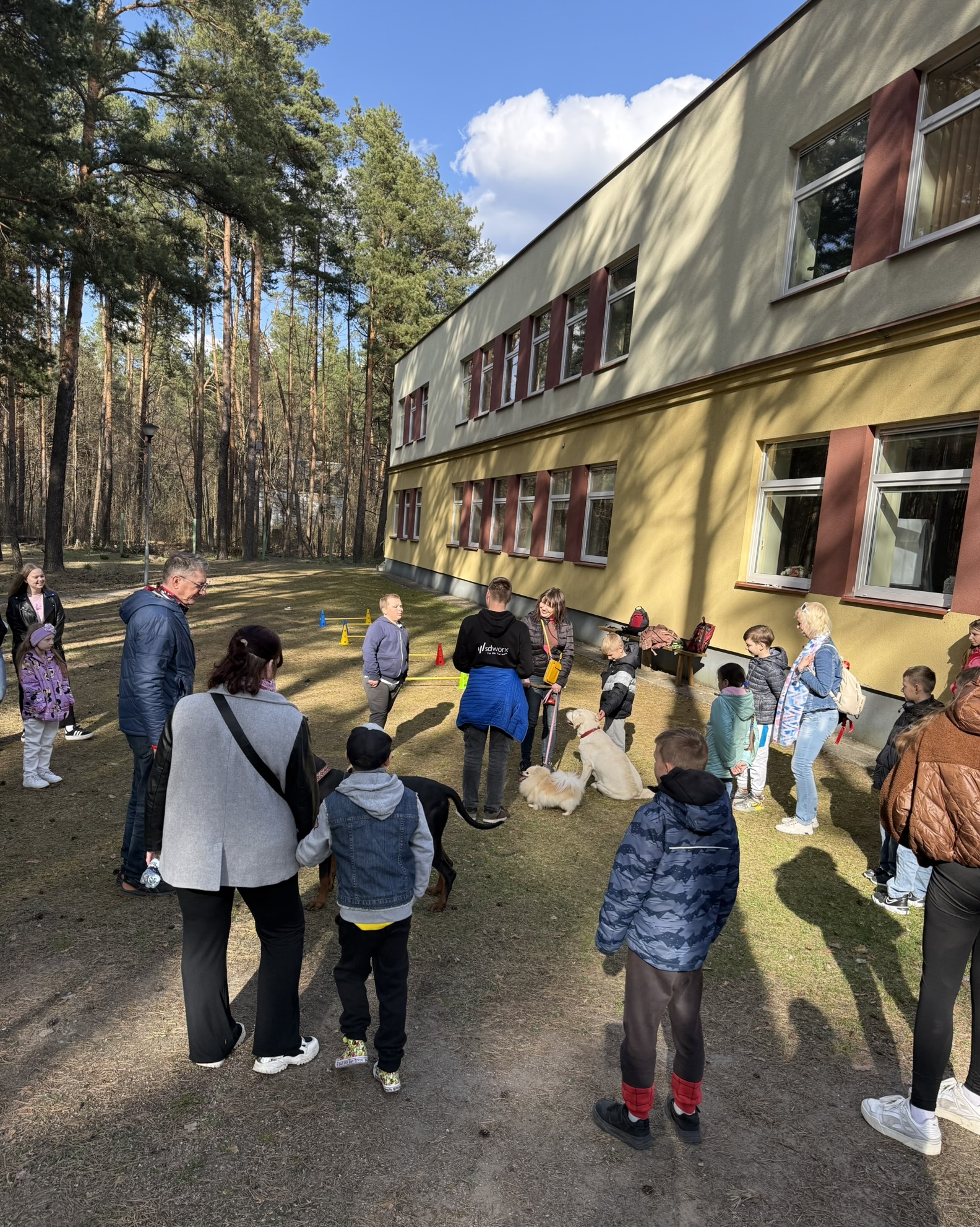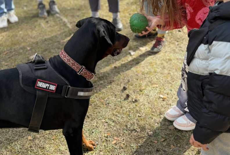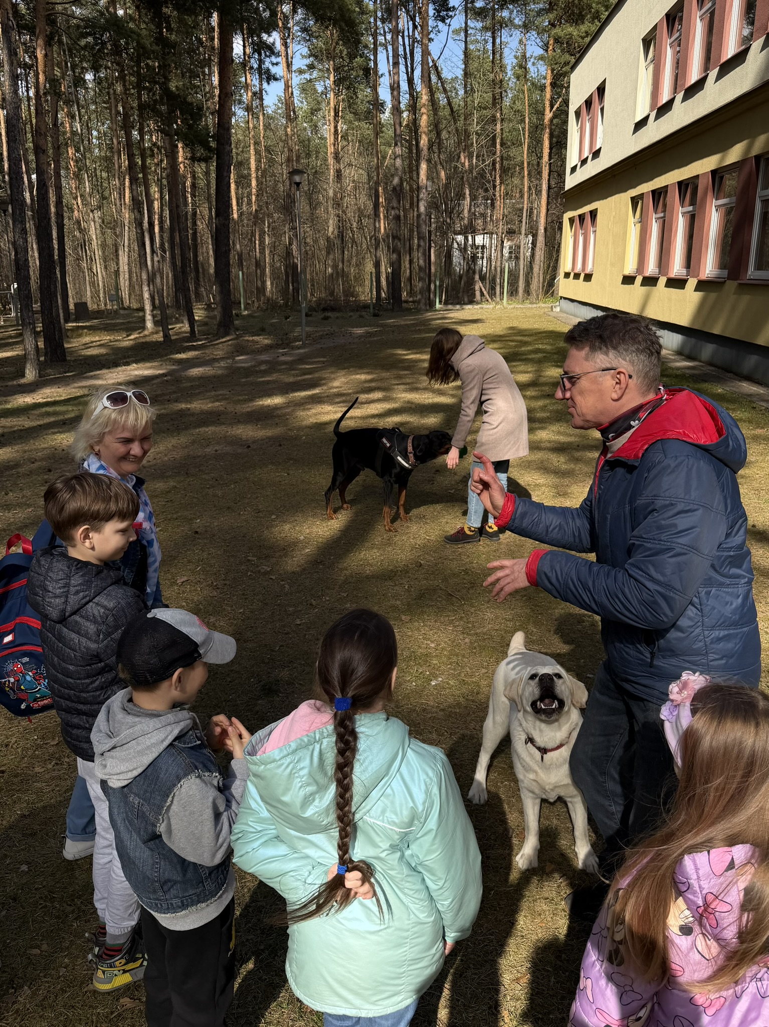 Prie šių veiklų prisijungė ir pirmasis kaniterapijos susitikimas! Jo metu vaikai susipažino (o kai kurie vaikučiai jau buvo pažįstami iš ankstesnių susitikimų) su nuostabiais keturkojais draugais – Argu, Luna ir Lyra. Užsiėmimą vedė Mindaugas su savo šunimis Argu ir Luna bei Jolita su savo šunyte Lyra. Šilta, saugi ir jauki aplinka padėjo vaikams atsipalaiduoti, patirti teigiamas emocijas bei užmegzti ryšį su terapiniais šunimis. Kaniterapija nėra tik žaidimas su šunimis – tai procesas, kurio metu: