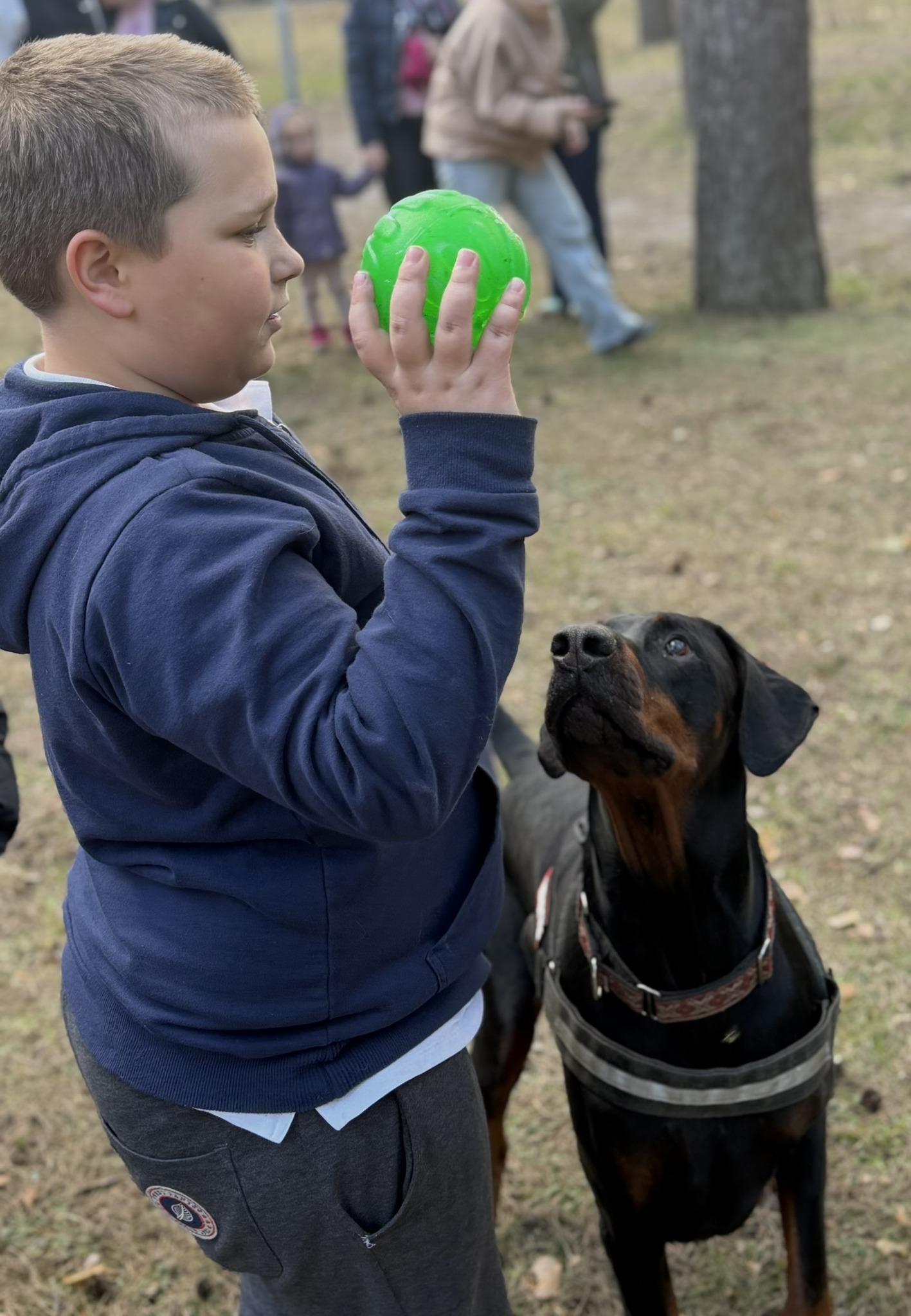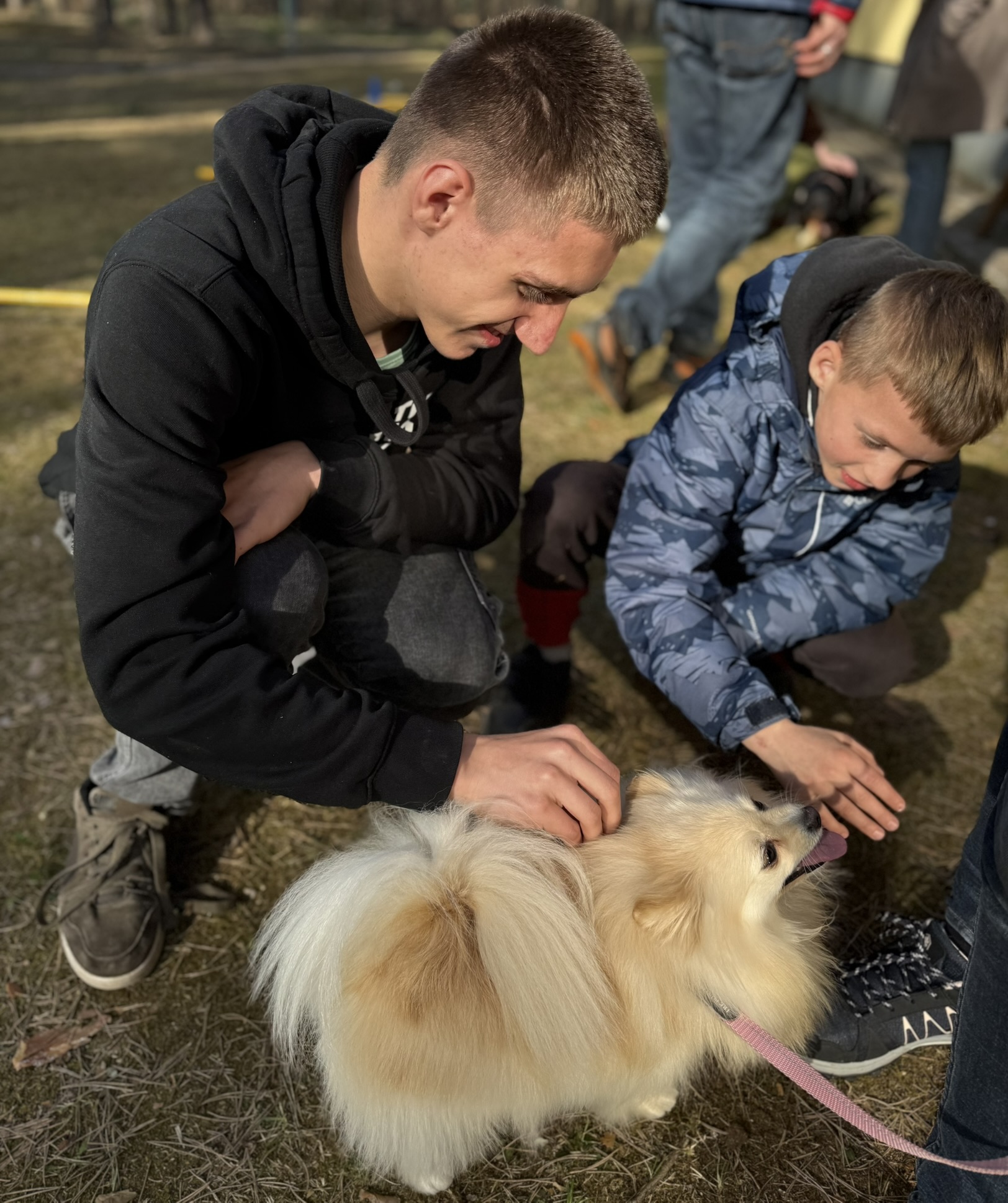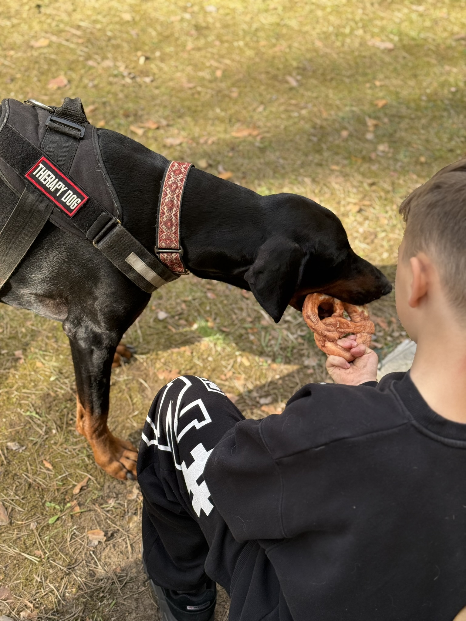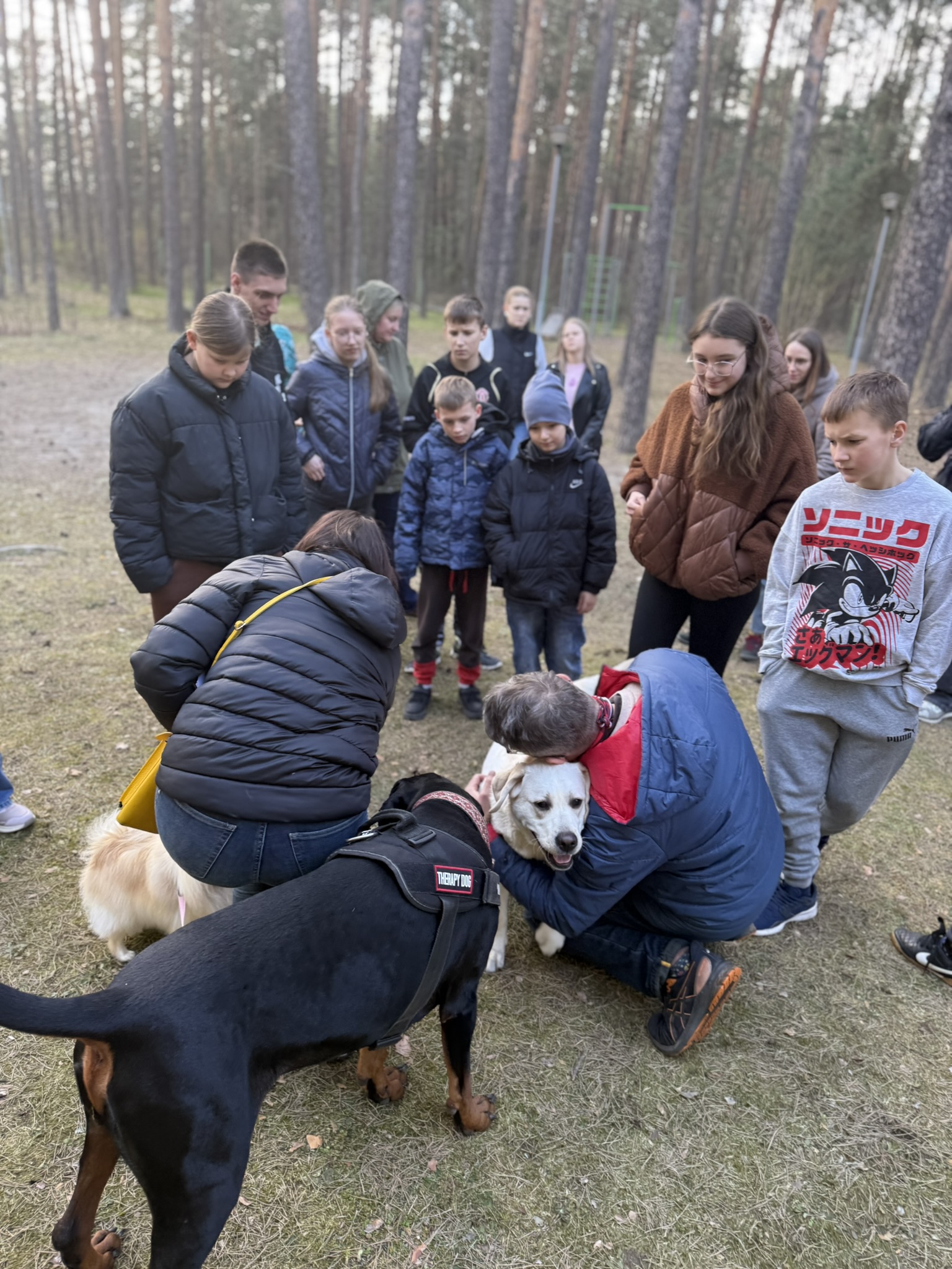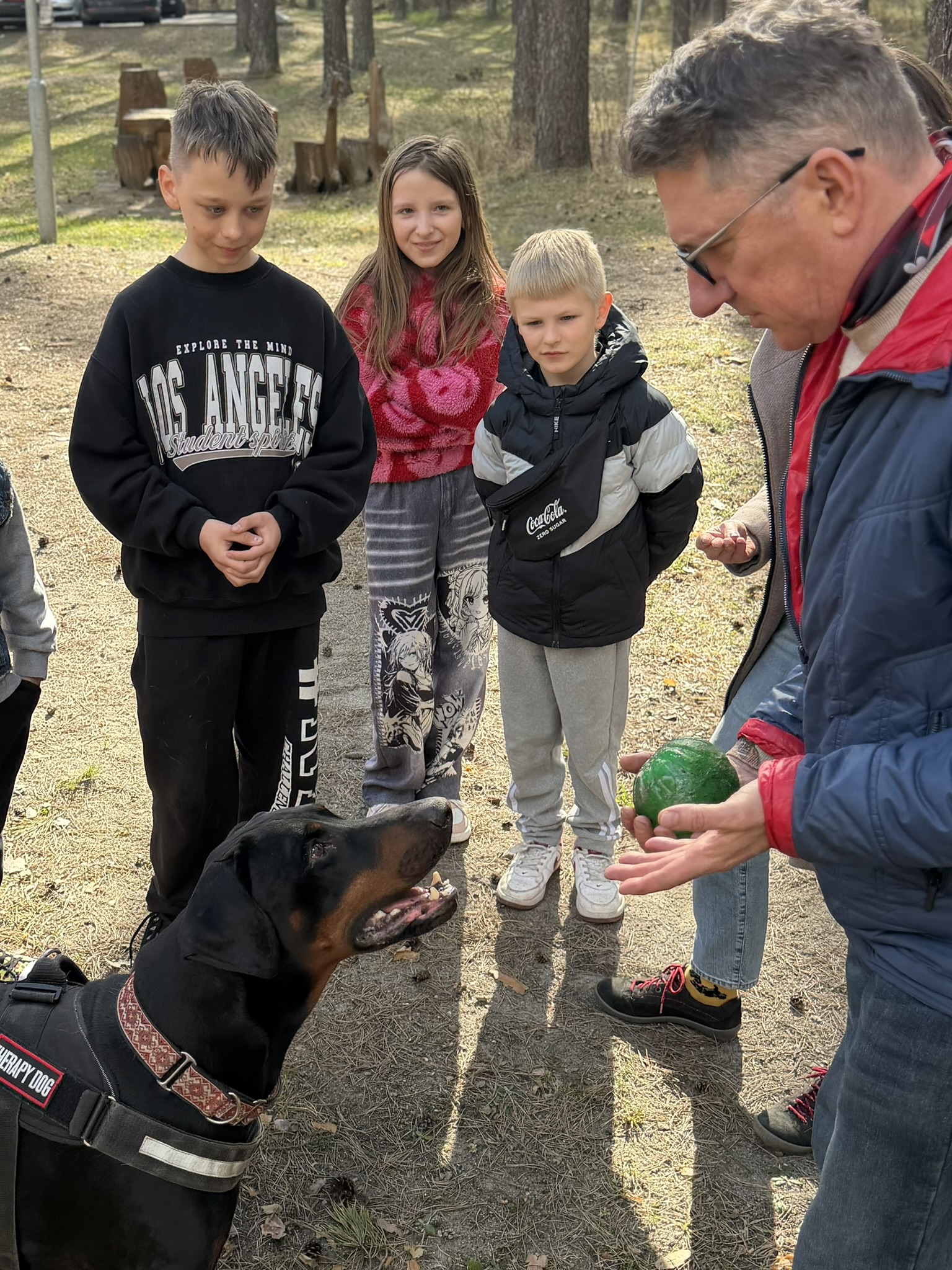 Prie šių veiklų prisijungė ir pirmasis kaniterapijos susitikimas! Jo metu vaikai susipažino (o kai kurie vaikučiai jau buvo pažįstami iš ankstesnių susitikimų) su nuostabiais keturkojais draugais – Argu, Luna ir Lyra. Užsiėmimą vedė Mindaugas su savo šunimis Argu ir Luna bei Jolita su savo šunyte Lyra. Šilta, saugi ir jauki aplinka padėjo vaikams atsipalaiduoti, patirti teigiamas emocijas bei užmegzti ryšį su terapiniais šunimis. Kaniterapija nėra tik žaidimas su šunimis – tai procesas, kurio metu: