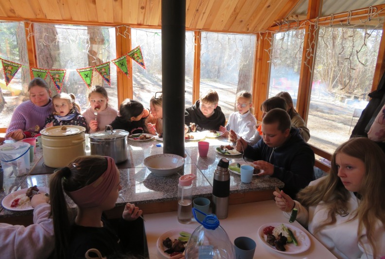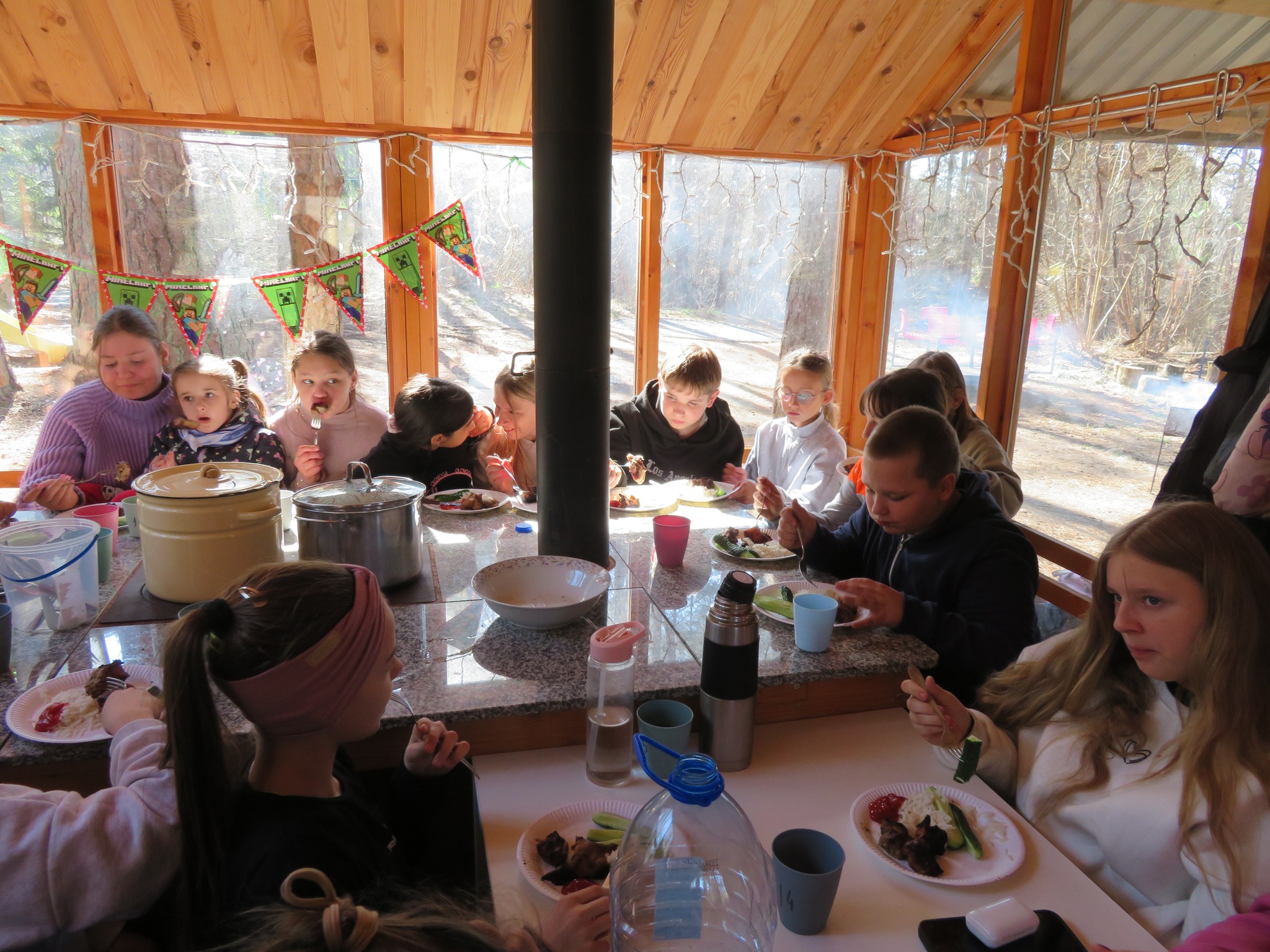 Dienos stovykla, vykdoma pagal projektą „Vaikų gerovės stiprinimas per sociokultūrines veiklas Varėnos mieste“, tęsiasi su dar daugiau įspūdžių ir prasmingų veiklų. Rytas prasidėjo tradiciškai – su ryto mankšta, kuri pažadino kūną ir paruošė aktyviai dienai. Didelis dienos akcentas – dviračių žygis, kurio metu vaikai ne tik aktyviai judėjo, bet ir mėgavosi gamta, stiprino ištvermę bei komandinį ryšį. Po aktyvios veiklos visų laukė jaukus ir gardus bendrystės momentas – kartu virėme plovą ant laužo. Tai buvo ne tik kulinarinė patirtis, bet ir smagus bendravimo laikas, kupinas juoko ir gerų emocijų. Kūrybiškumo netrūko ir popietę – vaikai gamino kvapų skleidėjus iš molio, leisdami pasireikšti savo fantazijai ir kurdami jaukius, asmeniškus darbelius.