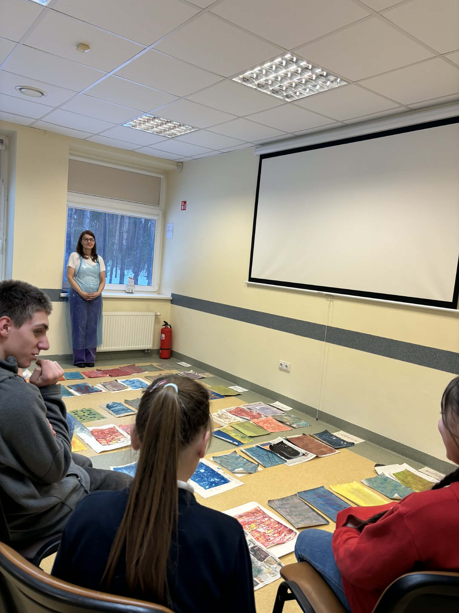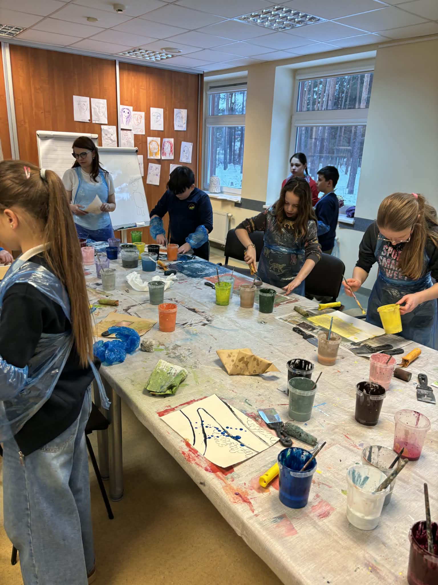 Pasibaigus kūrybiniam procesui, vyko bendras aptarimas. Vaikai pasidalijo savo piešiniais ir papasakojo, kokias emocijas jie bandė išreikšti. Terapeutas uždavė klausimus, skatinančius vaikus giliau susimąstyti apie savo jausmus. Šis aptarimas buvo labai svarbus, nes leido vaikams ne tik išlieti emocijas ant popieriaus, bet ir jas įvardyti, suprasti ir pasidalinti jomis su kitais. Tai padėjo stiprinti emocinį raštingumą ir kurti saugią erdvę saviraiškai.