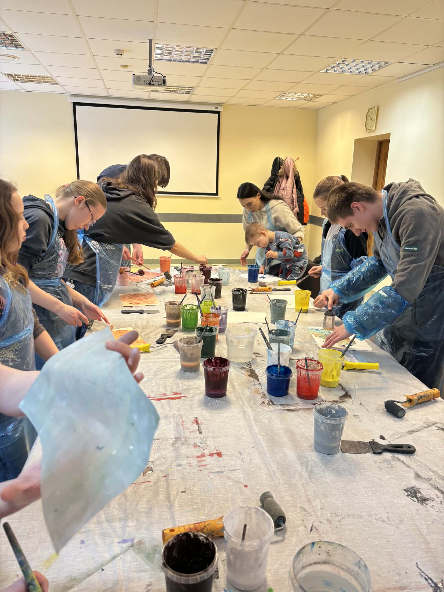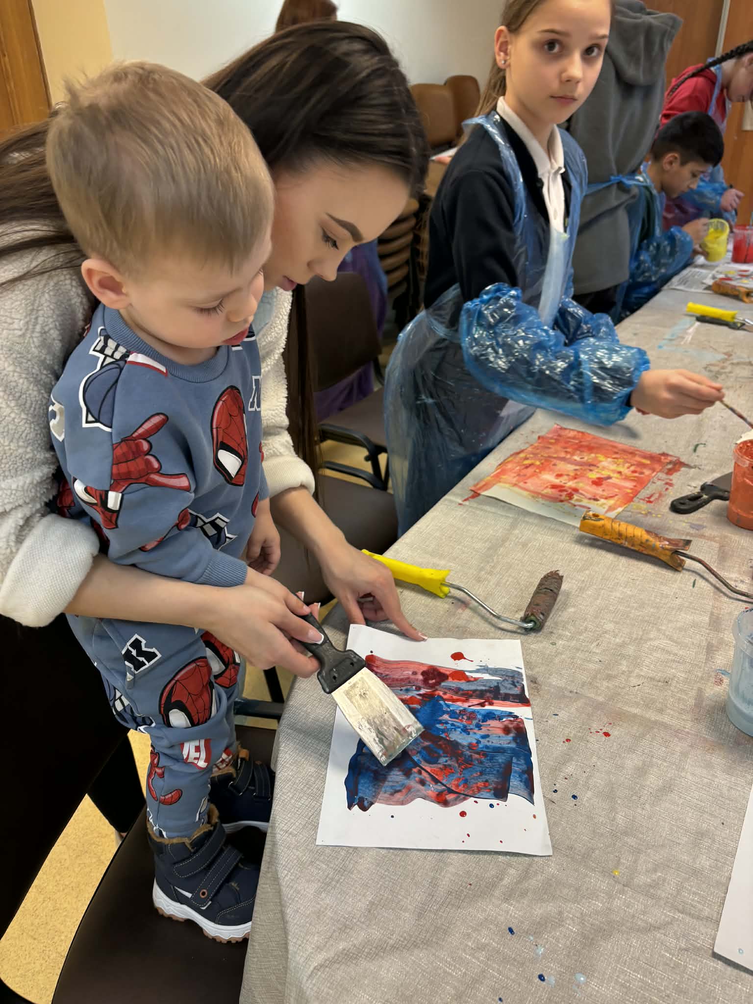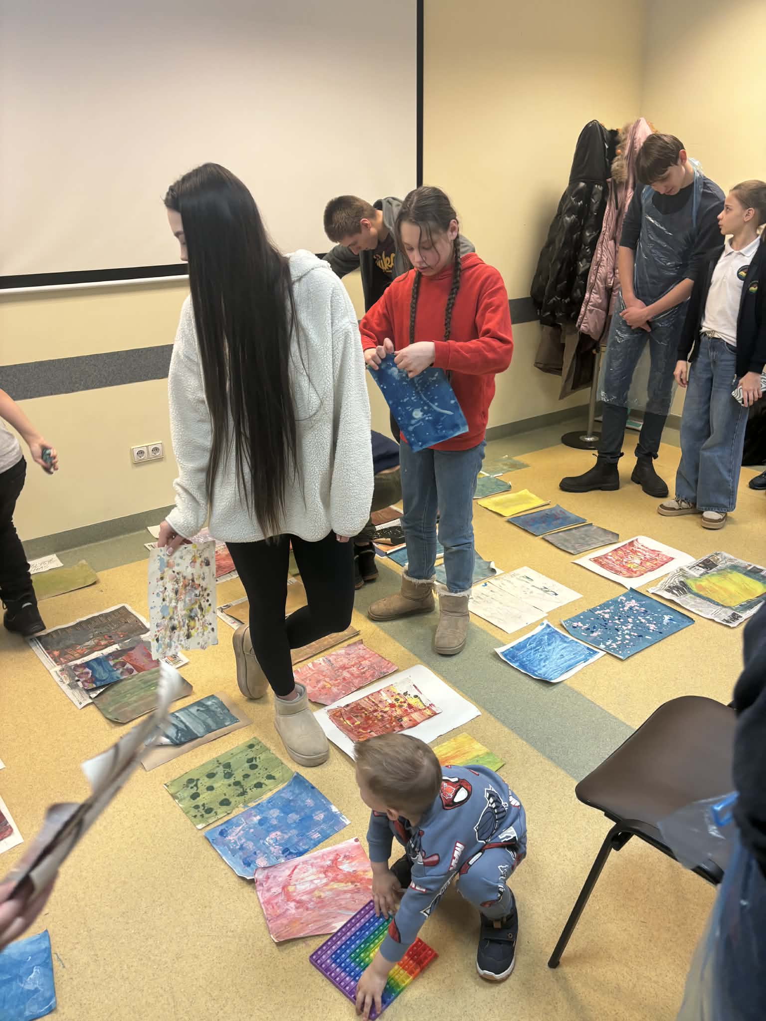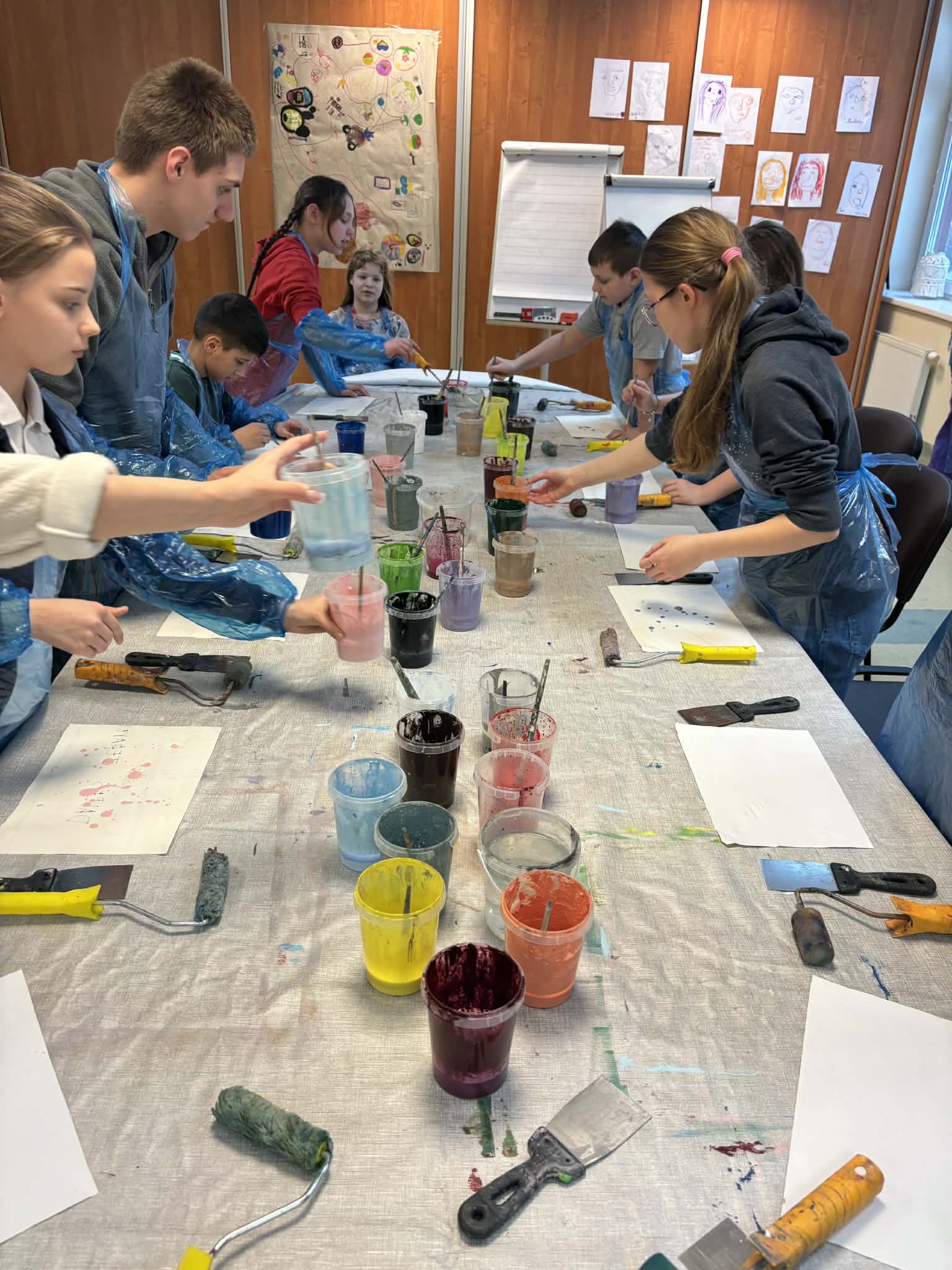 Veiklų metu vaikams talkino savanoriai. Jie padėjo vaikams pasiruošti priemones, padrąsino juos eksperimentuoti su spalvomis ir formomis, o kai kuriems padėjo išreikšti savo mintis popieriuje, jei jie jautėsi sutrikę ar nedrąsūs. Savanoriai taip pat padėjo palaikyti tvarką ir užtikrinti saugią atmosferą.