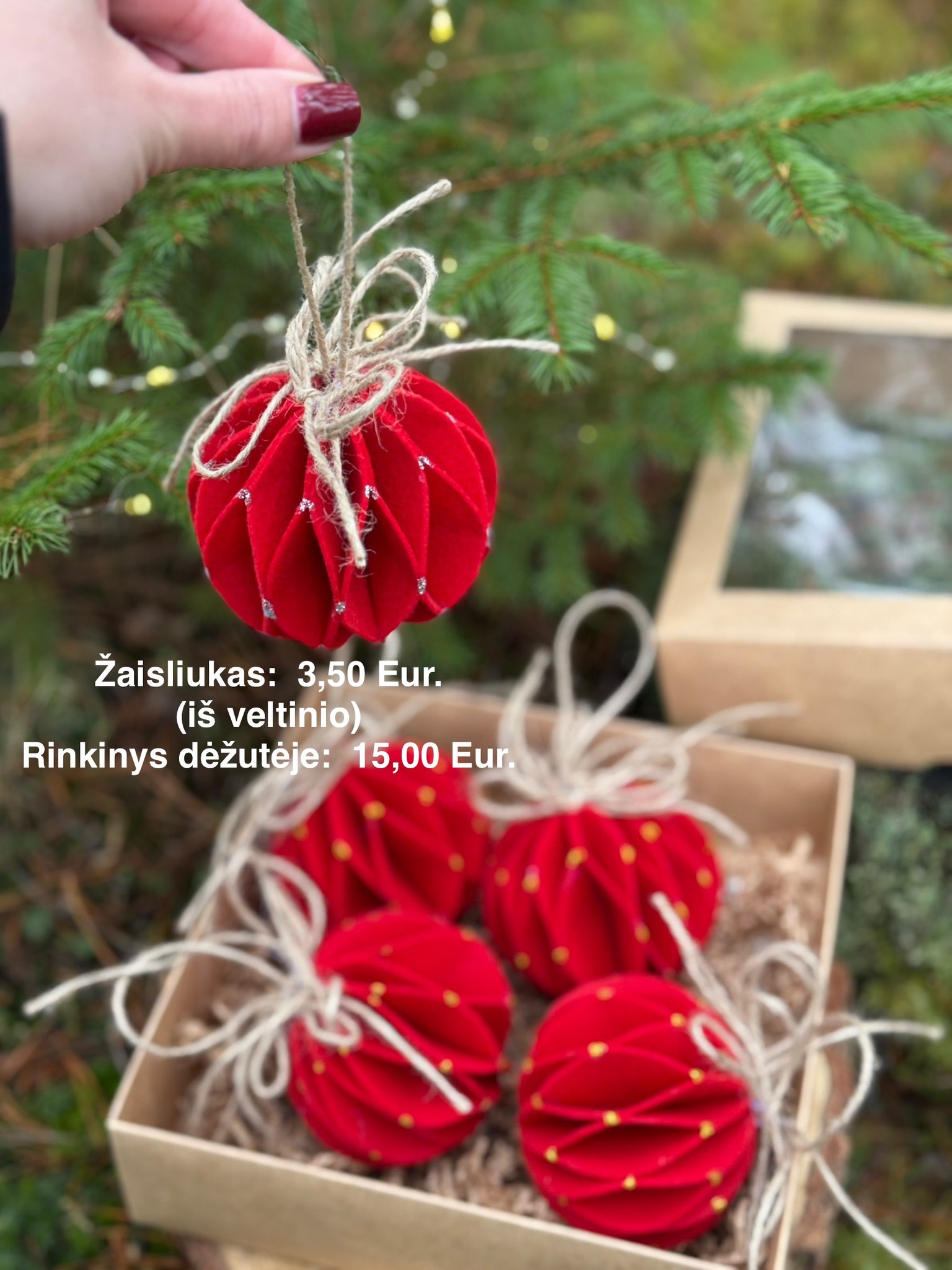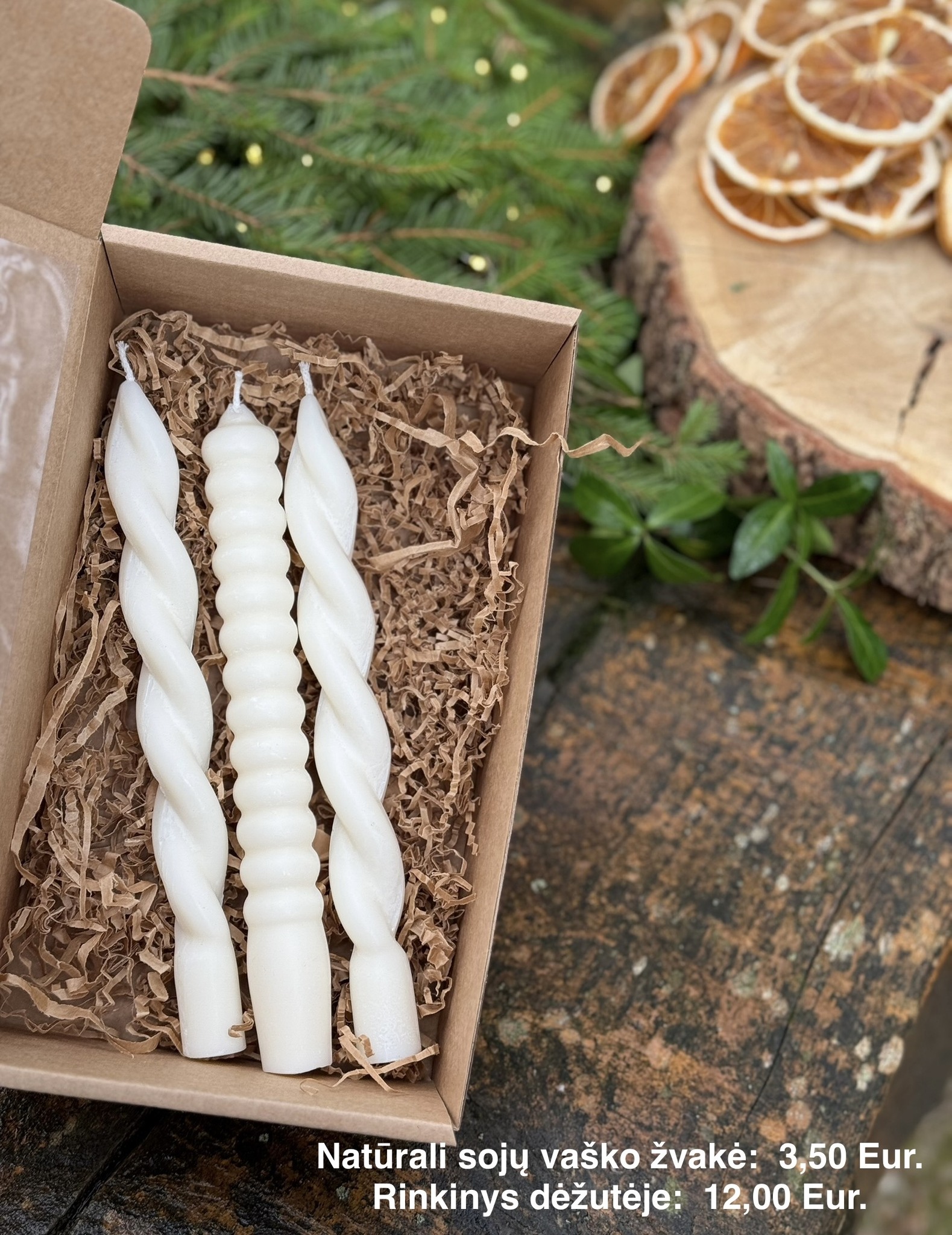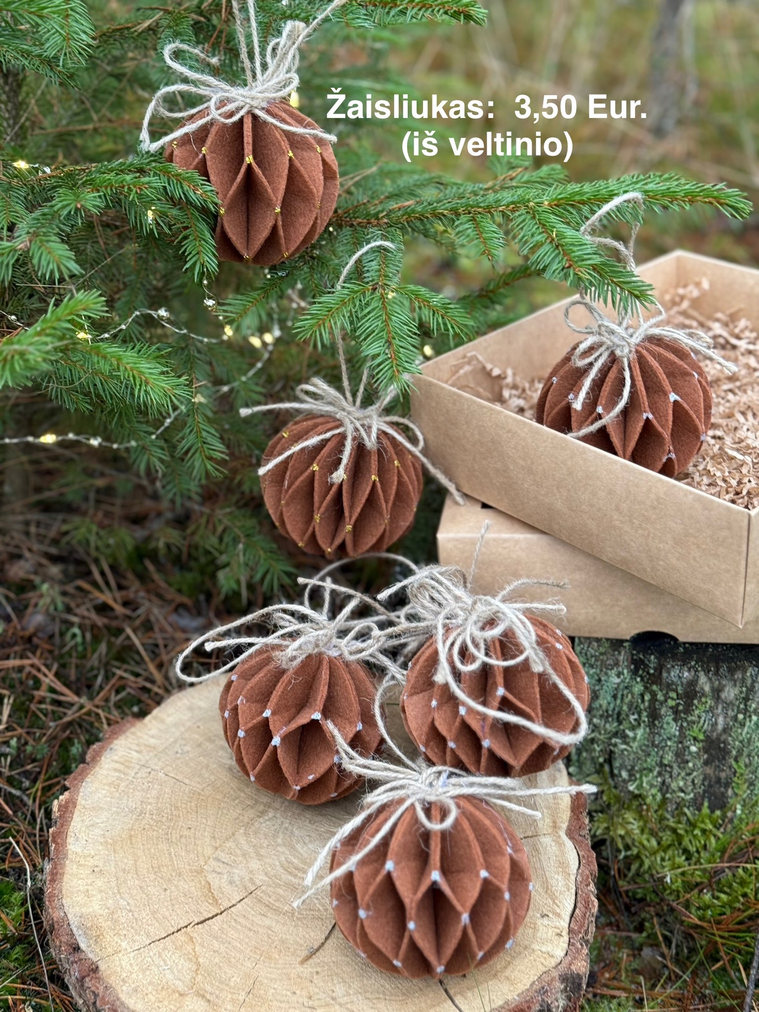 - Pakuojame į dovanų dėžutes, dekoruojame natūraliomis detalėmis (džiovintais apelsinais, gilėmis ir kt.)