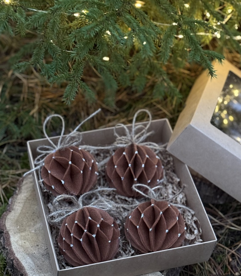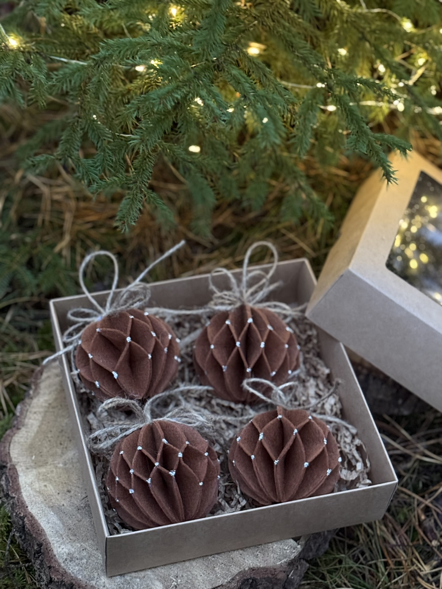 - Kalėdinių eglutės žaisliukų rinkinys (4 vnt. rusvas)