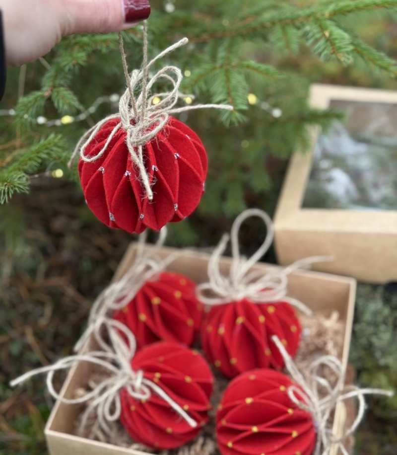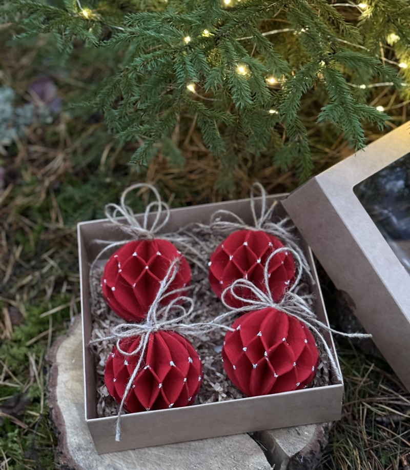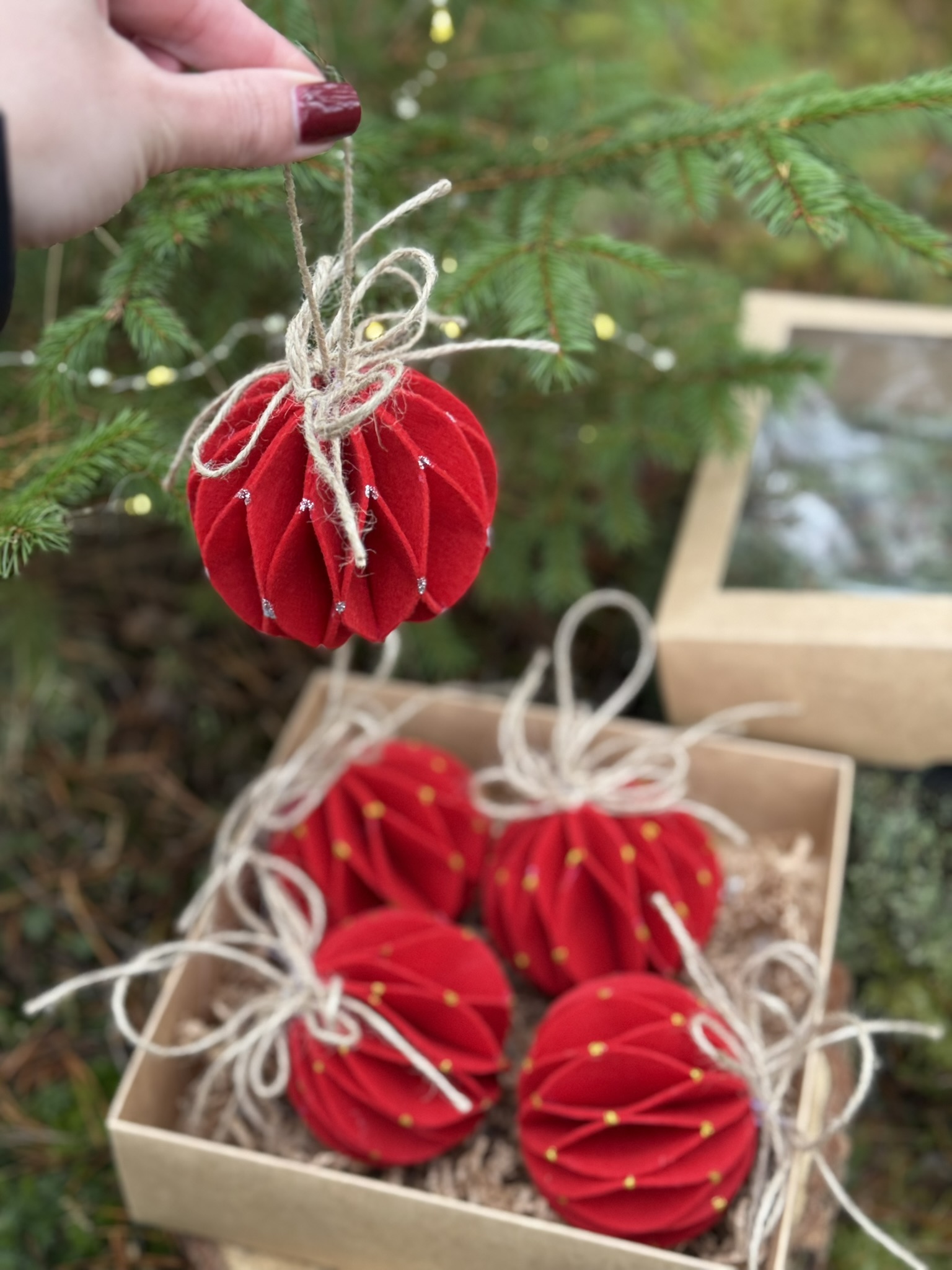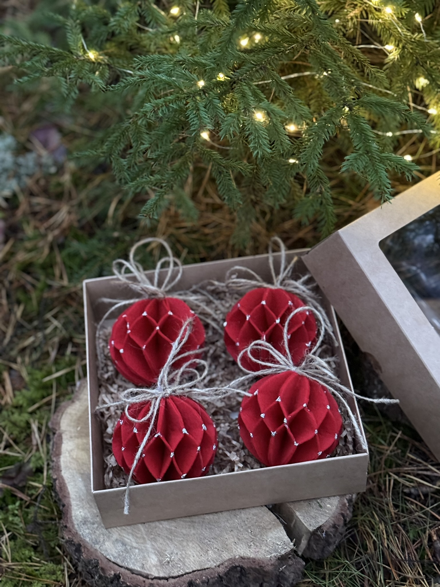 - Kalėdinių eglutės žaisliukų rinkinys (4 vnt. raudonas)