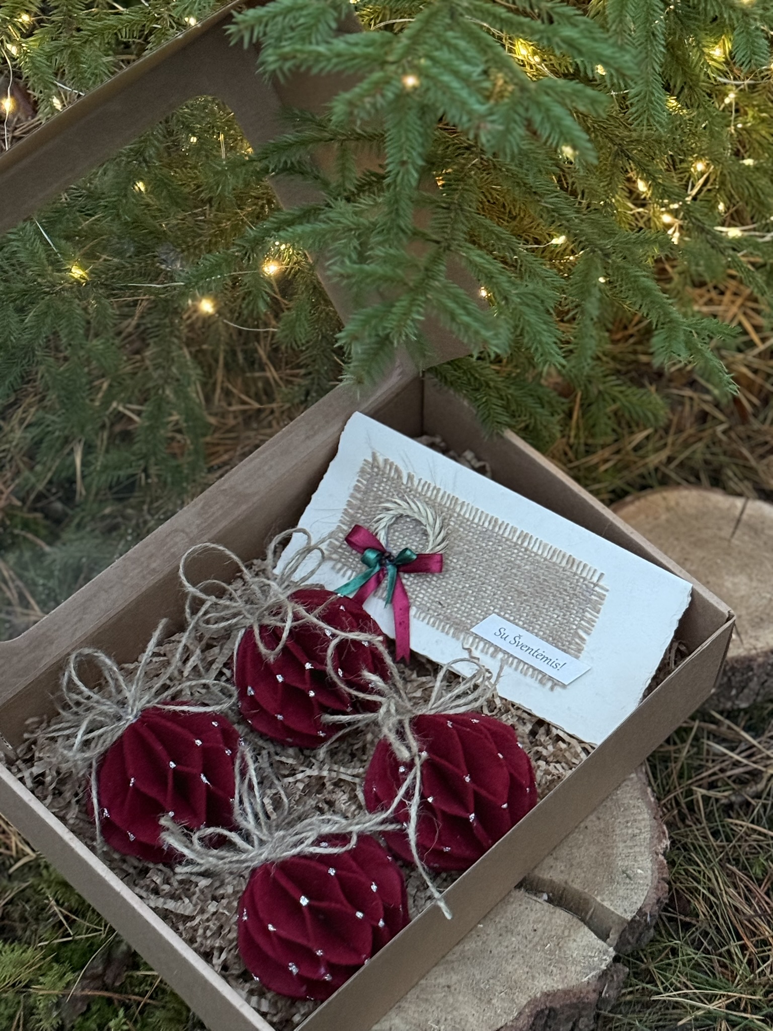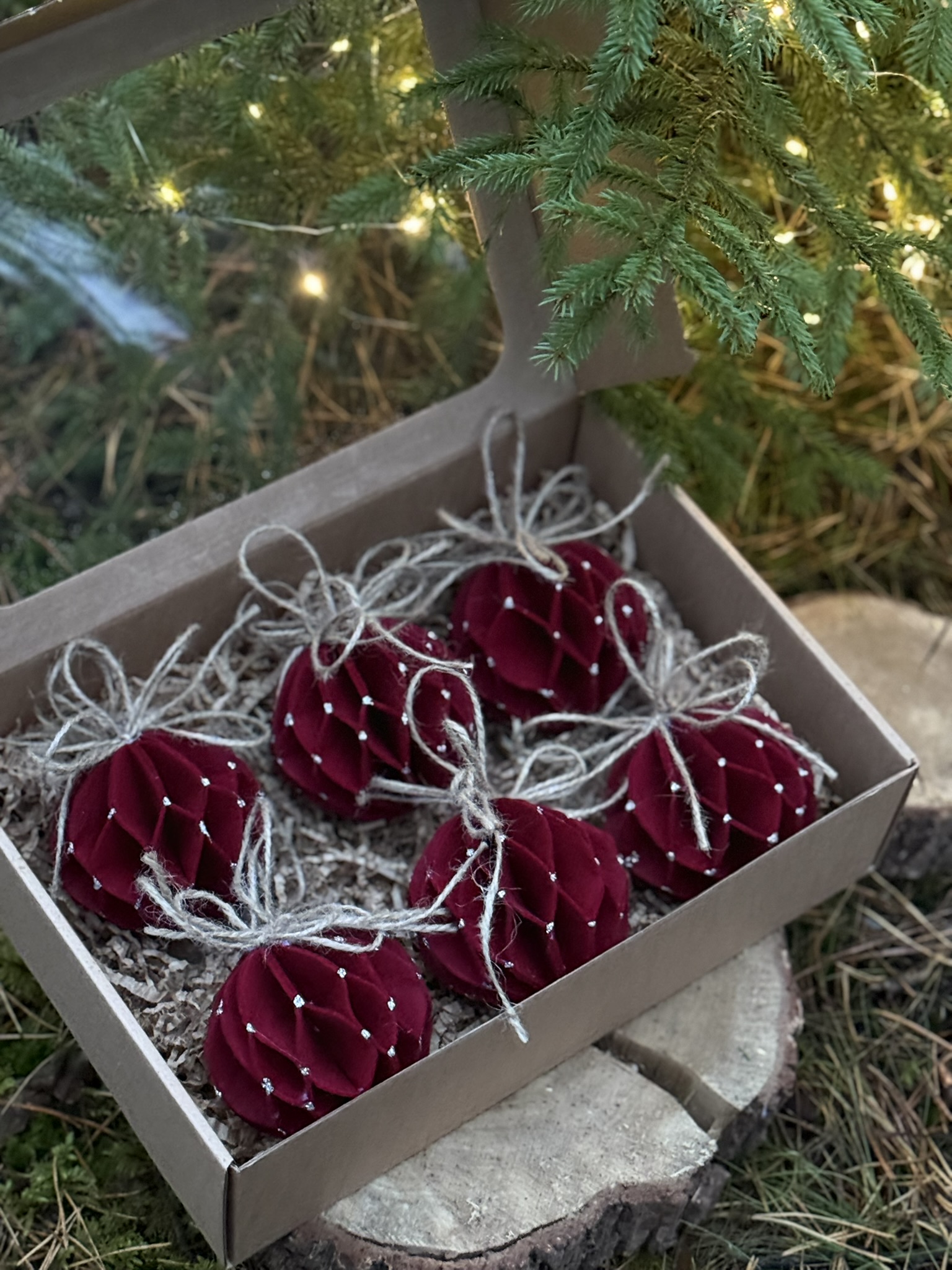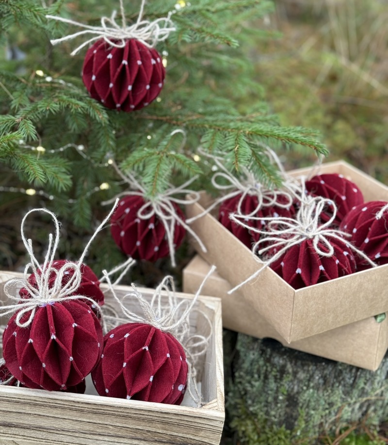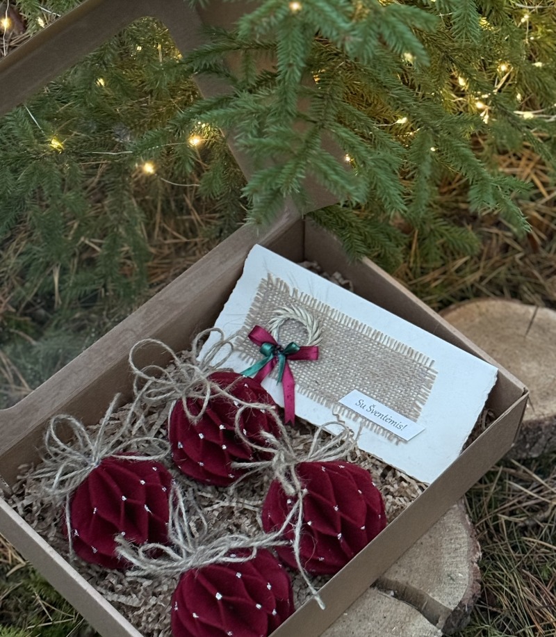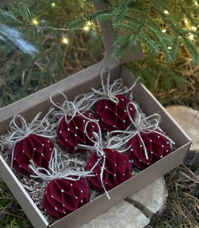 - Kalėdinių eglutės žaisliukų rinkinys (6 vnt. bordo)