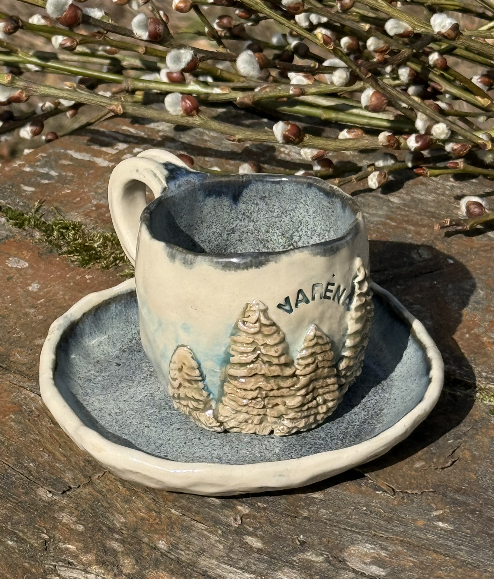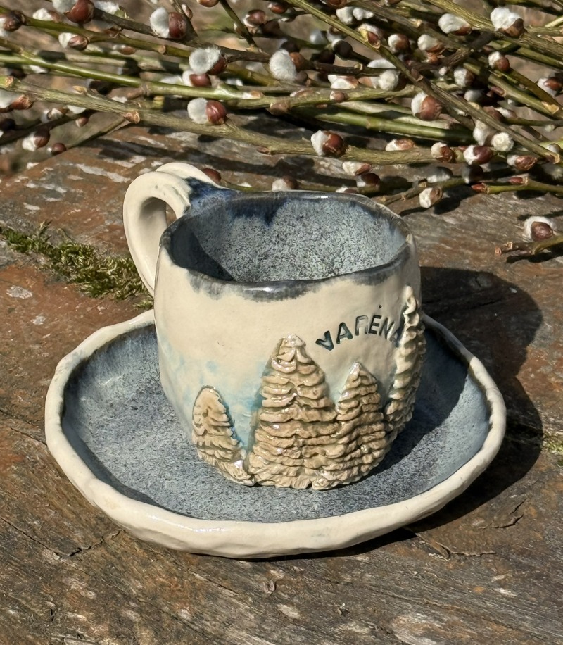 Keramikinis puodelis su lėkštute ,,Varėnos miškas"