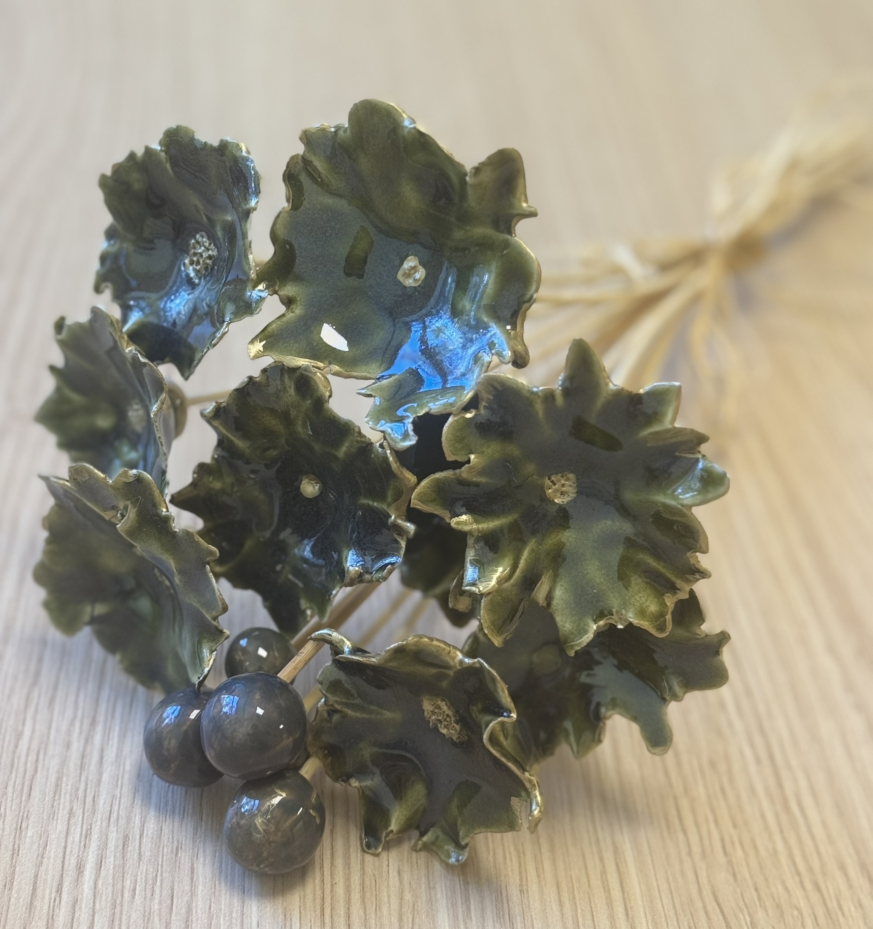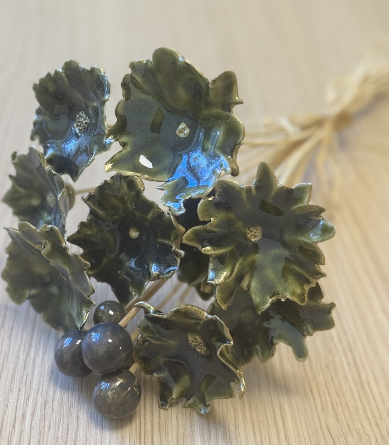 - Keramikinių gėlių puokštelė (samaninės spalvos)