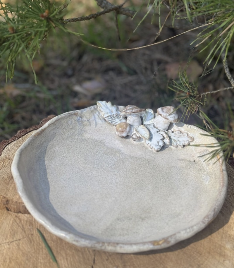 Keramikinis indas ,,Grybukai" (mažesnis, šviesiai rusvas 13)