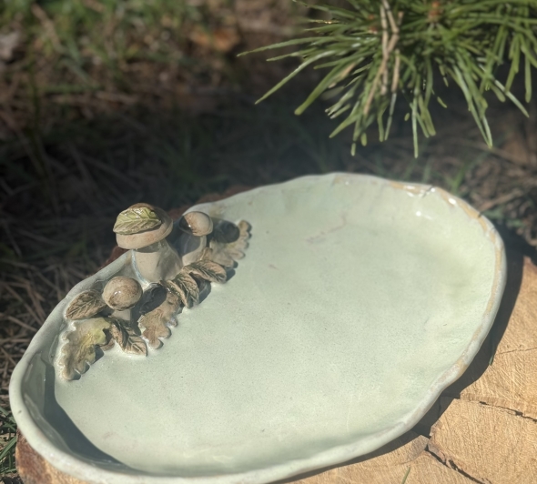 Keramikinis indas ,,Grybukai" (mažesnis, šviesiai rusvas 6)