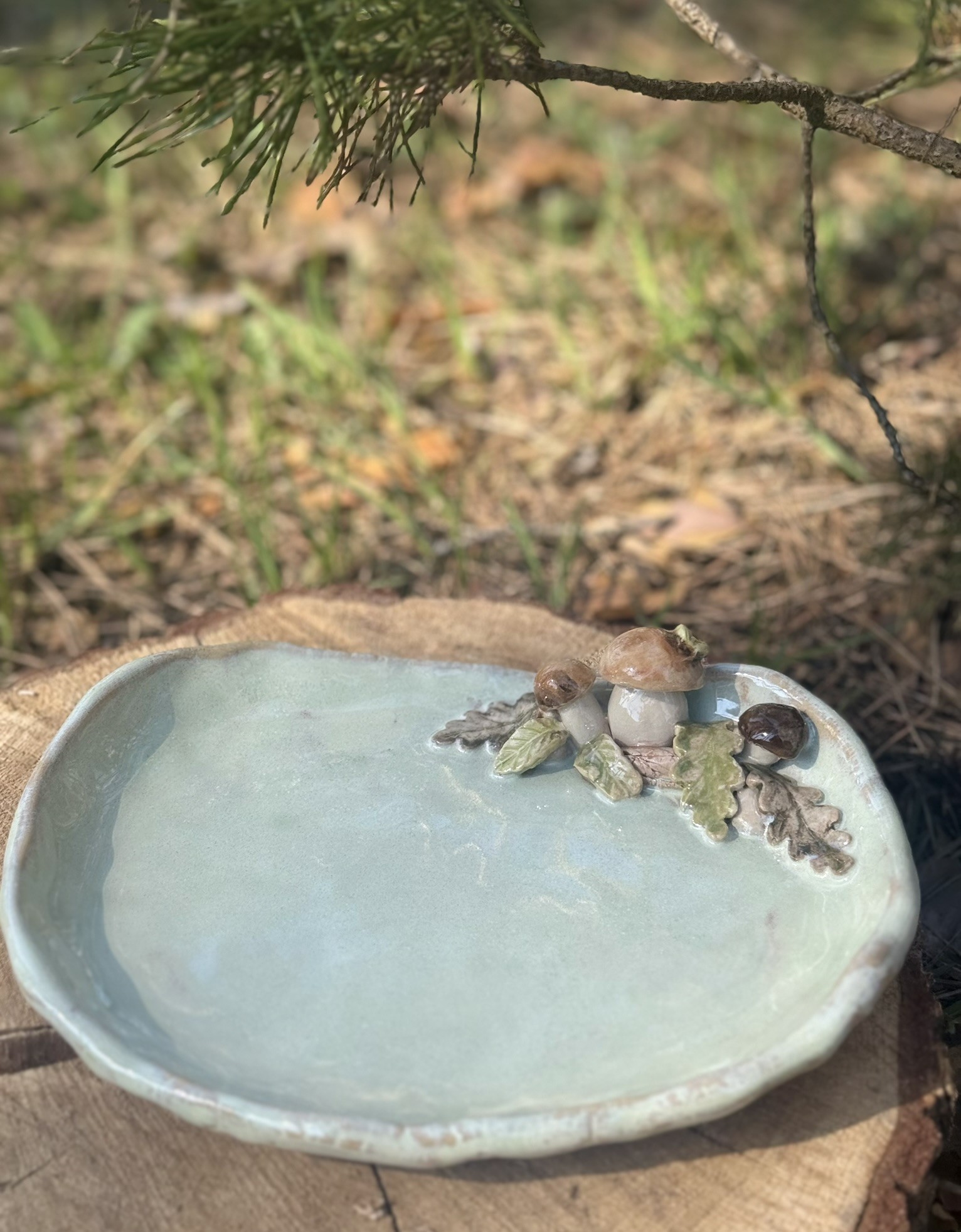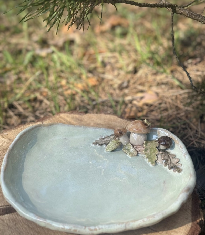 Keramikinis indas ,,Grybukai" (mažesnis, šviesiai žalsvas 1)