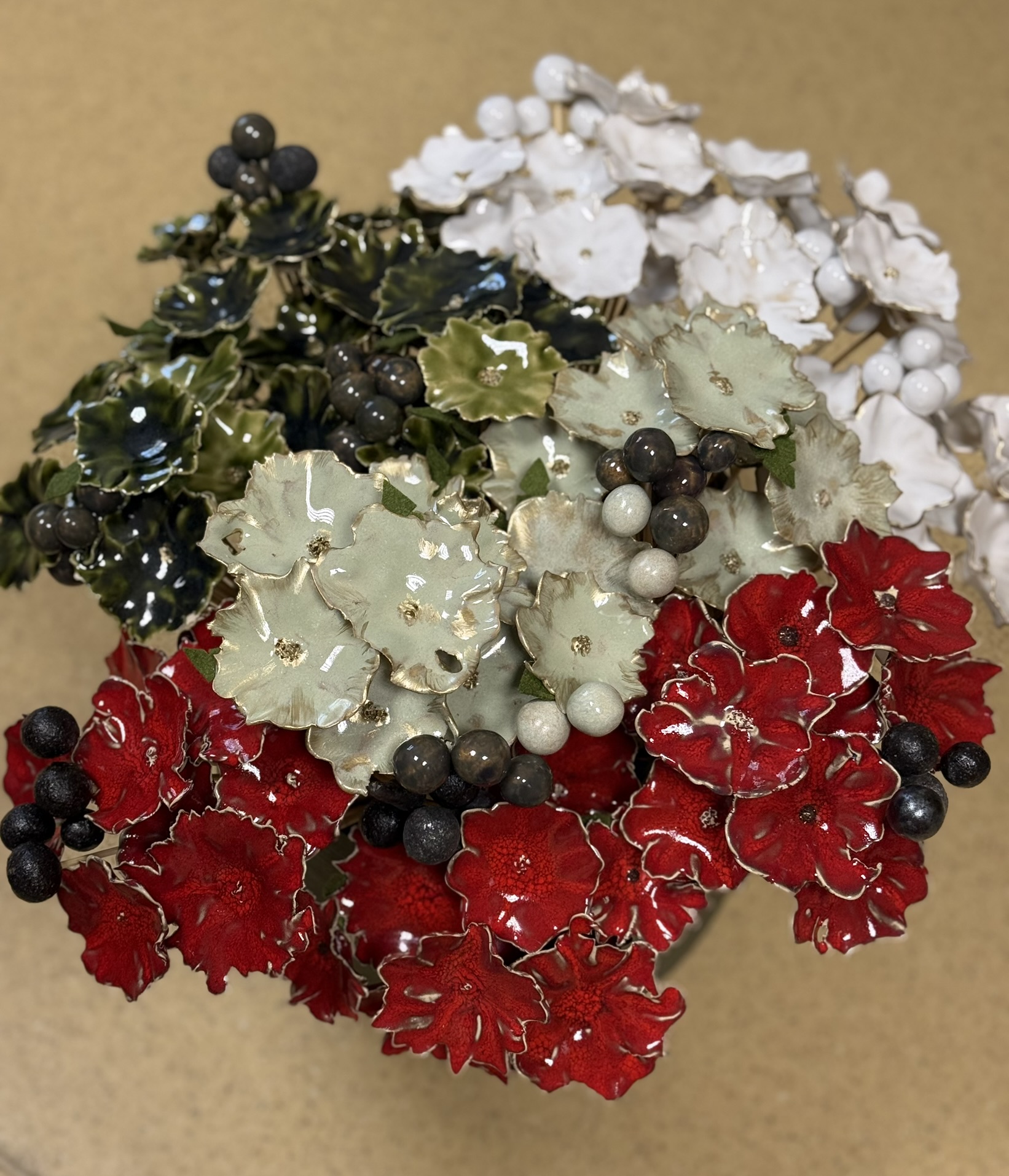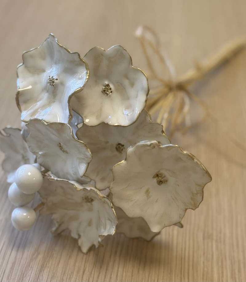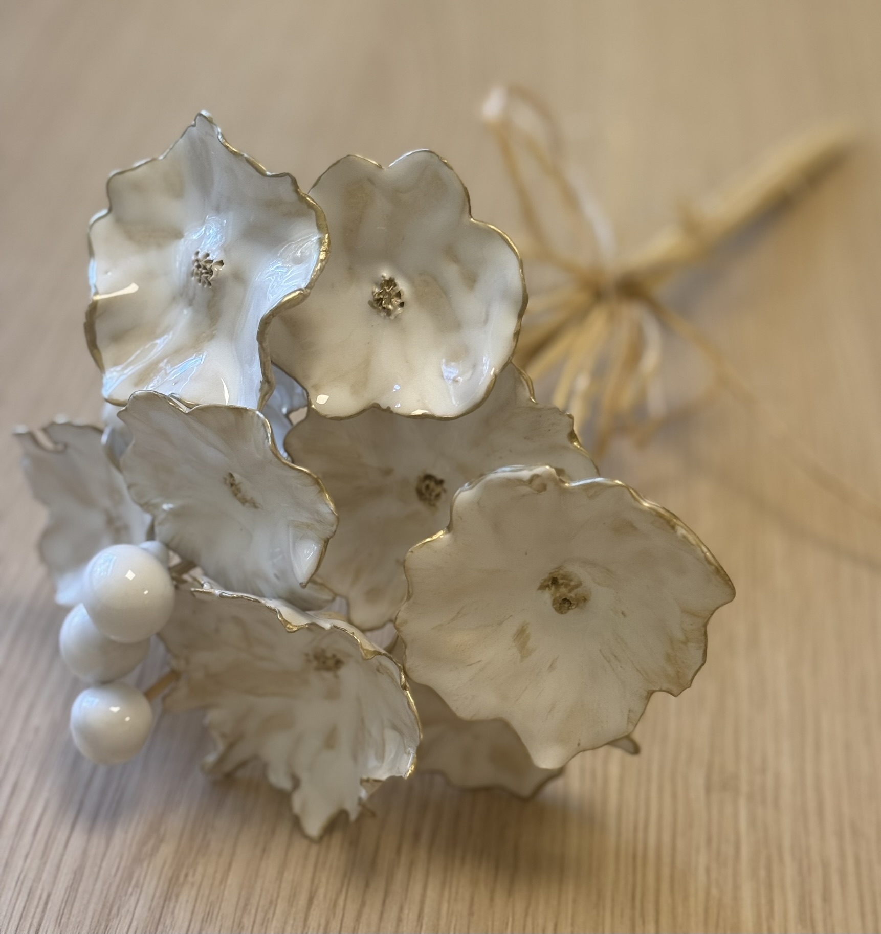 Keramikinių gėlių puokštelė (baltos spalvos)