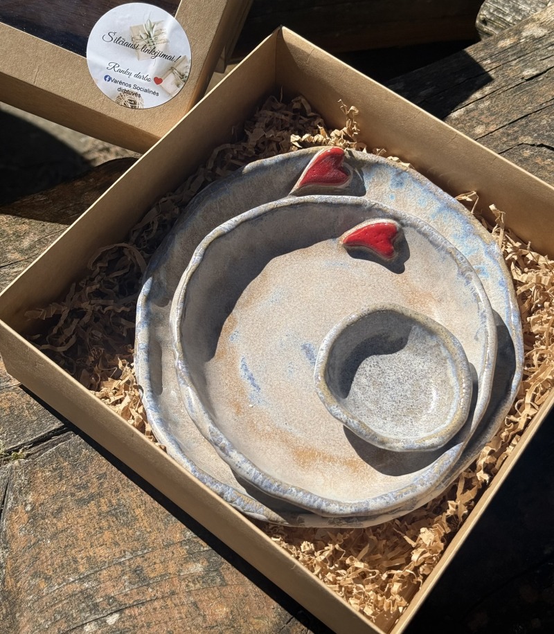 Rankų darbo keramikos indai 3 vnt. tinkantys užkandžiams, padažams ir kt.