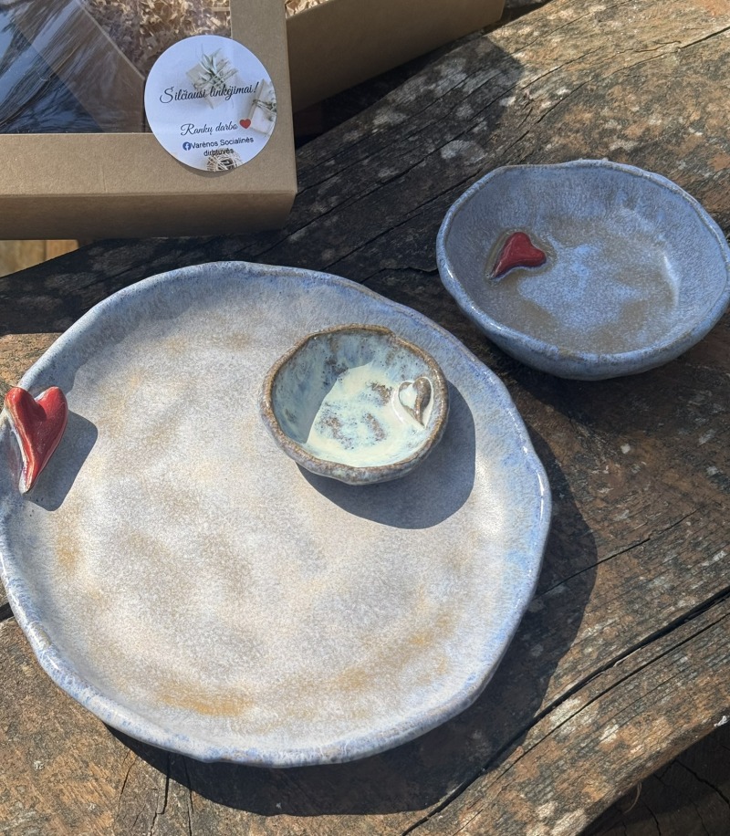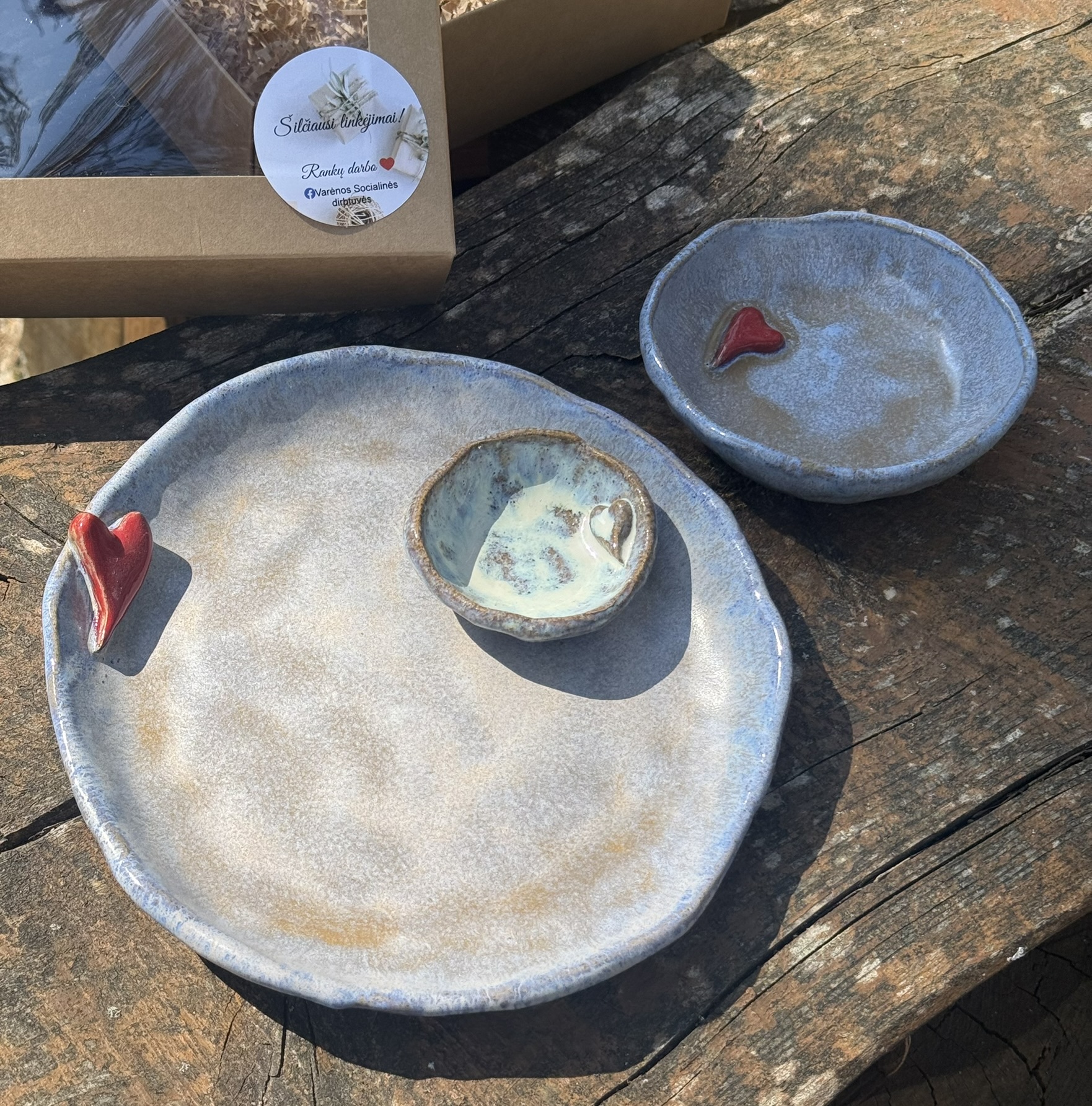 Rankų darbo keramikos indai 3 vnt. tinkantys užkandžiams, padažams ir kt.