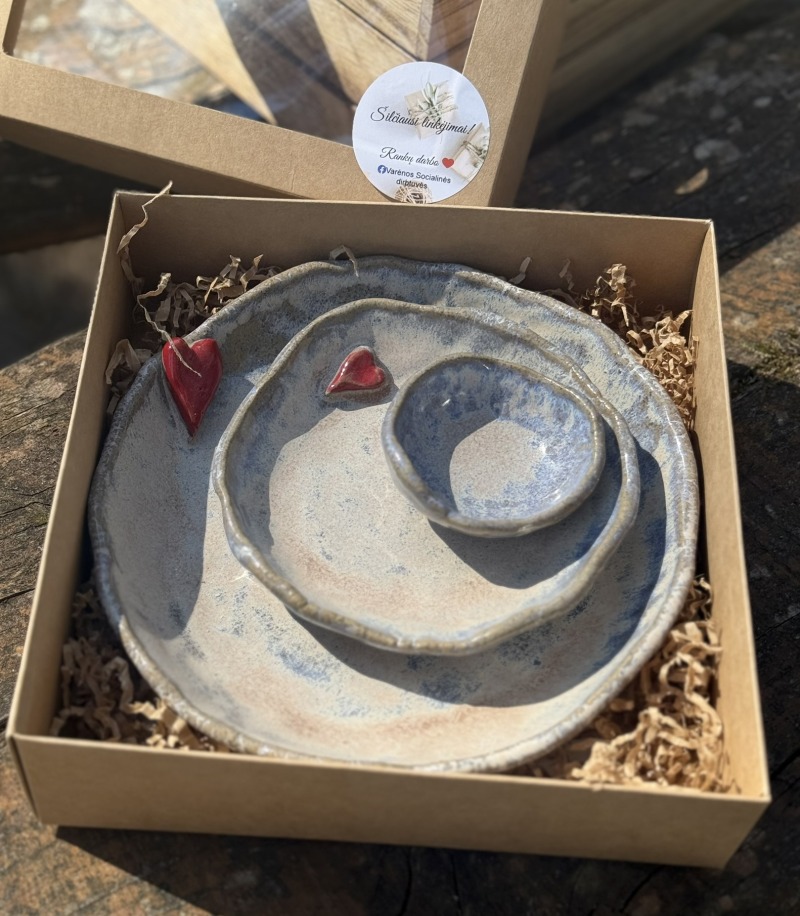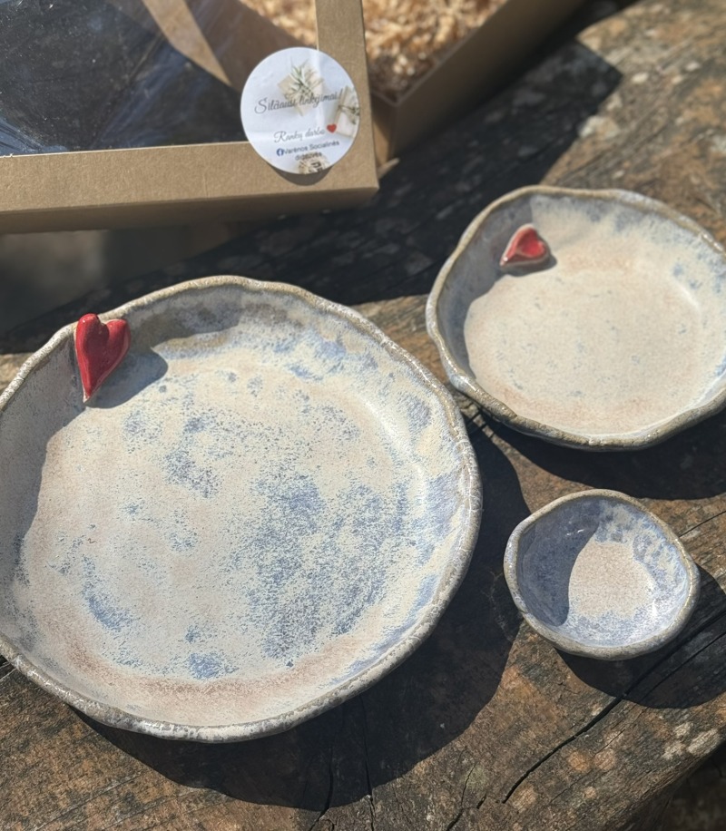 Rankų darbo keramikos indai 3 vnt. tinkantys užkandžiams, padažams ir kt.