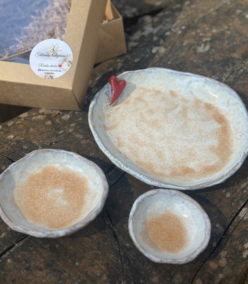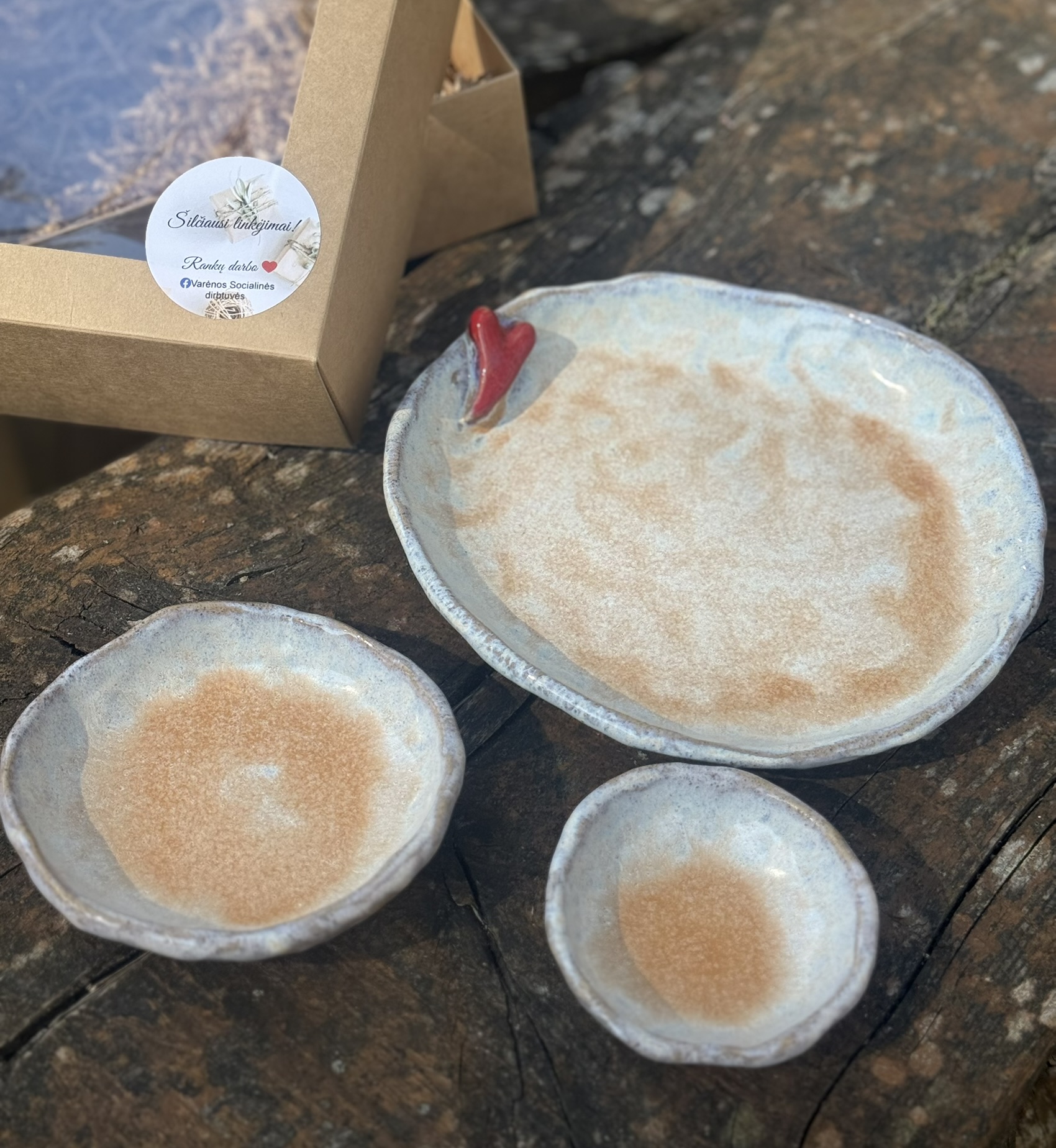 Rankų darbo keramikos indai 3 vnt. tinkantys užkandžiams, padažams ir kt.