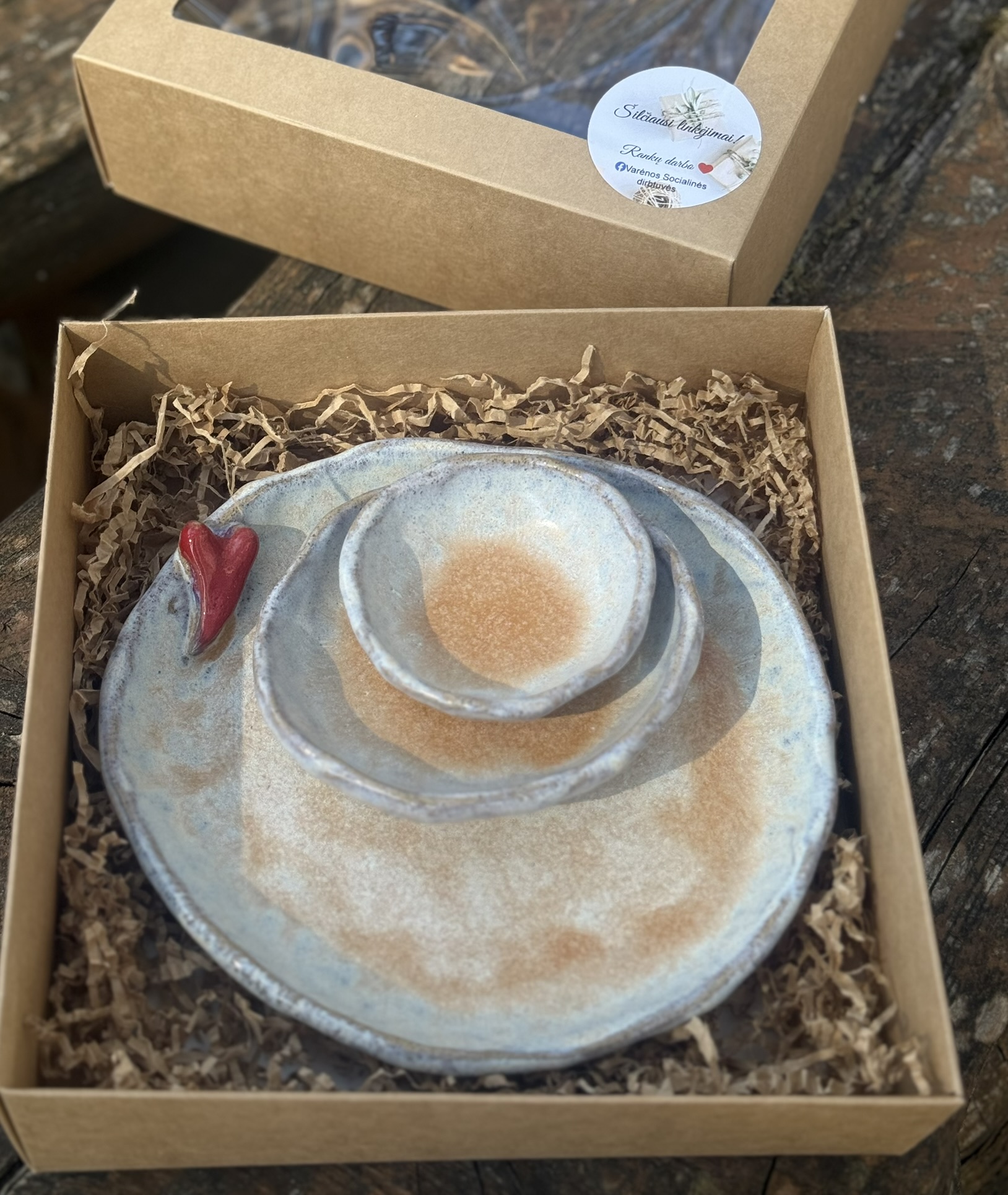 Keramikinių indų rinkinys 3 vnt. ( šviesiai melsvai rusvas Nr. 2)