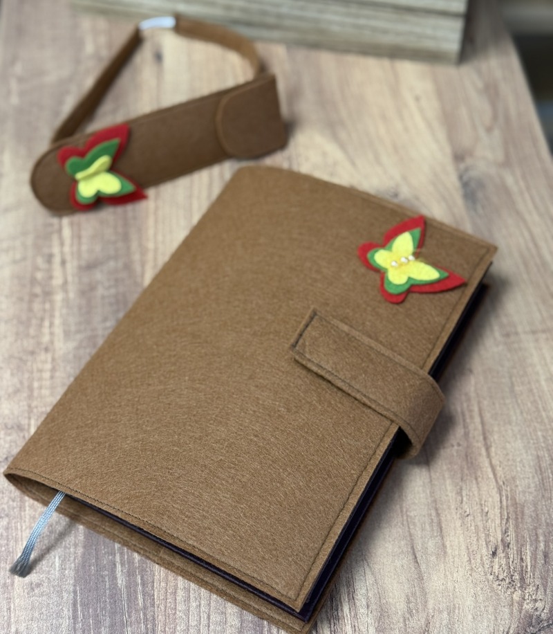 Unikalus rankų darbo dėklas darbo knygai, iš veltinio.
