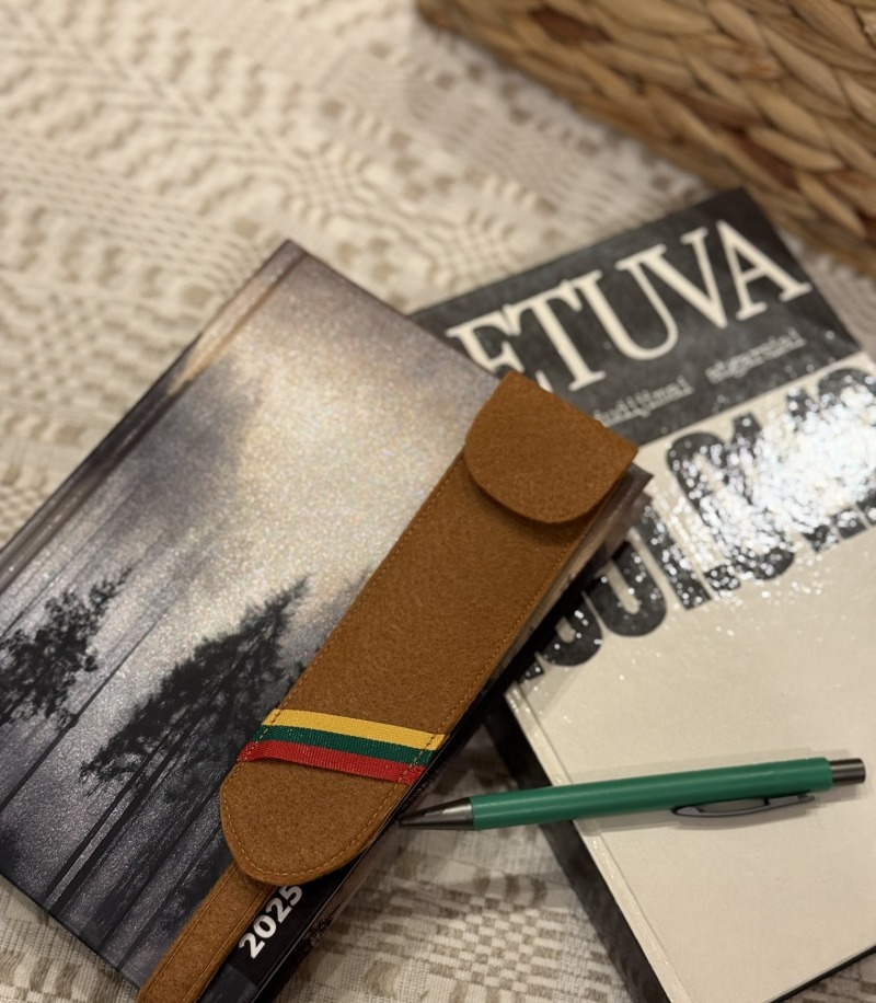 - Dėklas rašymo priemonei (rusvas su tautine juostele)